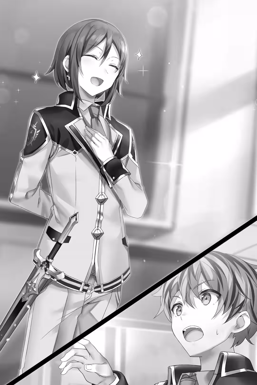 Lia and I walked to campus and greeted everyone when we entered Class 1-A. Our peers looked a little tougher. We naturally had plenty to talk about because we hadn’t seen one another in a week, and before I knew it, the bell announcing the start of homeroom rang. We took our seats right as Chairwoman Reia burst through the door.