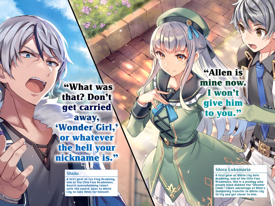 “Unlike everyone else, I am sending you to White Lily Girls Academy. You remember that school, right? It’s one of the Elite Five Academies. Idora Luksmaria, the ‘Wonder Child’ you defeated in the Sword Master Festival, goes there.”