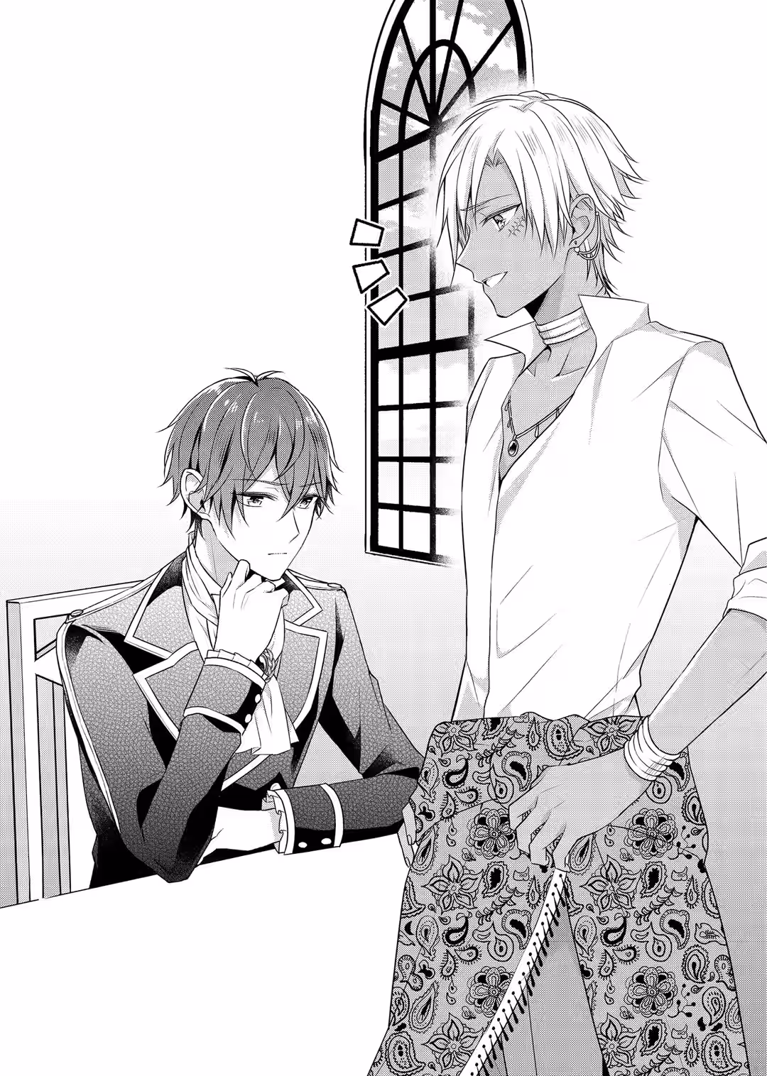 The mountain of bread atop the table was far too much to pass for a single serving. The table seated six, although only one of those seats was occupied; Yulan didn’t know if the titanic pile of bread or the person currently consuming it was to blame for the empty seats, but he would put money on the latter. The table’s sole diner had tan skin, silver hair, and an all-around uncouth vibe, but his facial features in particular held a feminine delicacy. His androgynous appearance was strikingly adorable in contrast to Yulan’s conventionally handsome visage.