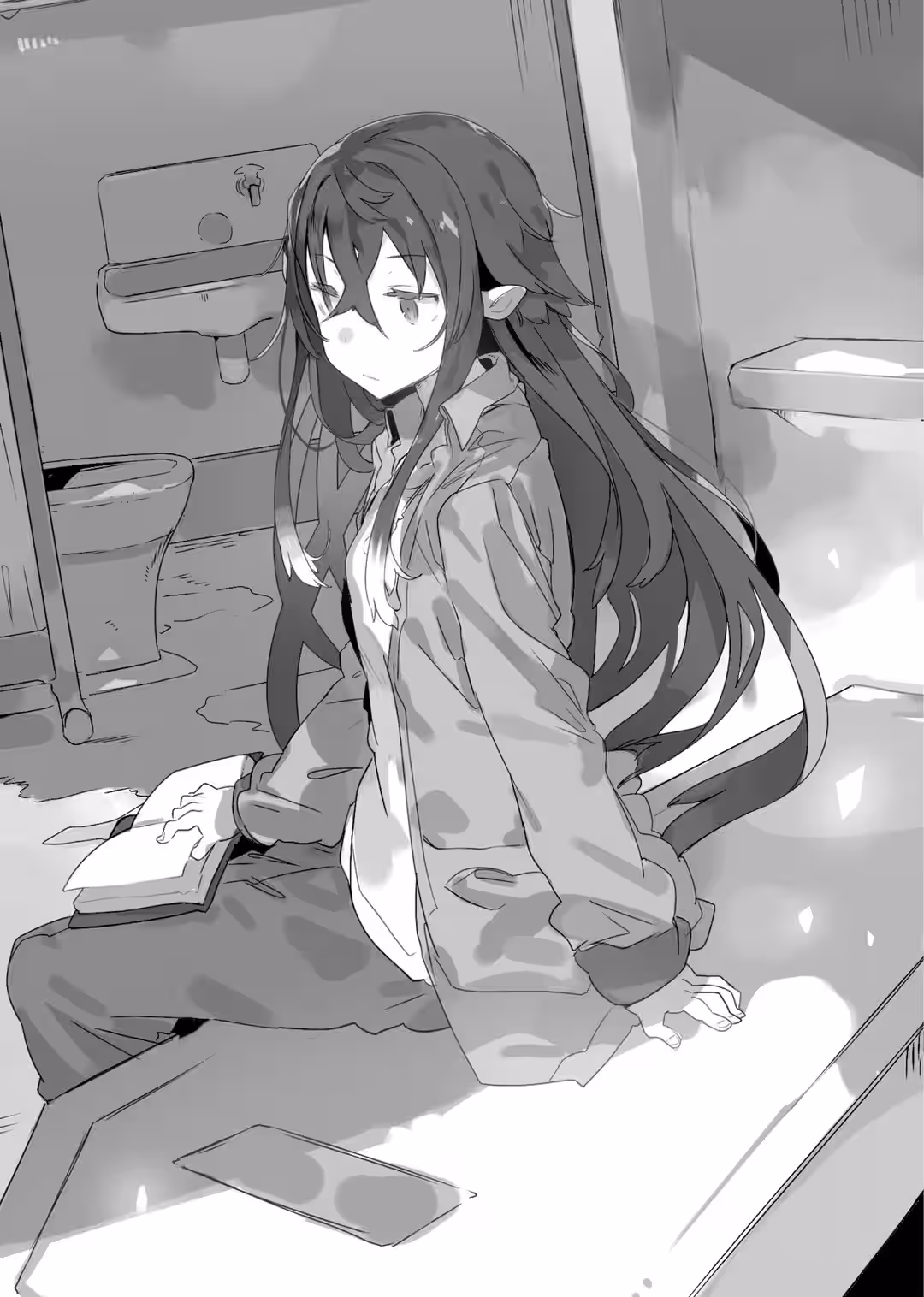 The wind swept up her black hair, revealing her pointed ears.