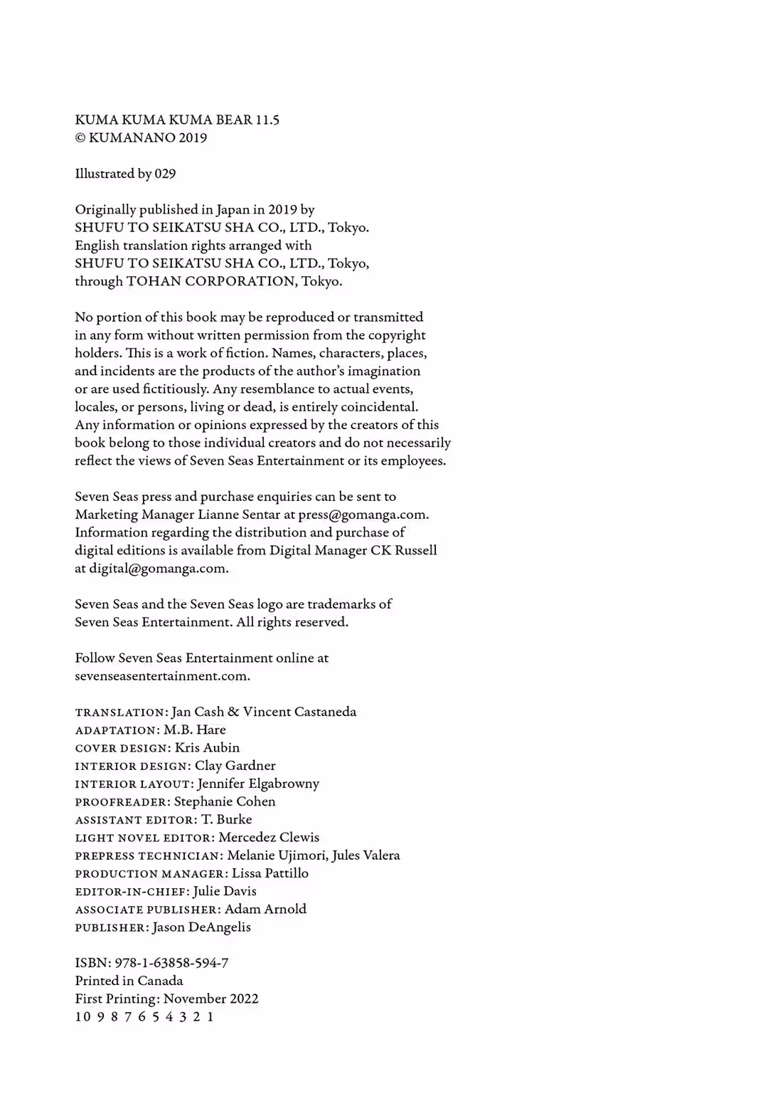 I’M KUMANANO. Thank you for picking up Kuma Kuma Kuma Bear Volume 11.5.