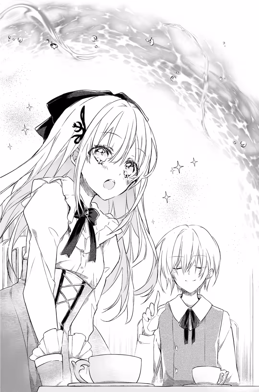Around the age of seven, when Kunon was already fully aware of his circumstances, a water crest appeared on his body. The crest was proof that he held magical power. Evidently, Kunon could perform water magic.