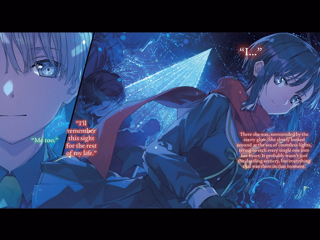There she was, surrounded by the starry glow. She slowly looked around at the sea of countless lights, trying to etch every single one into her heart. It probably wasn’t just the dazzling scenery, but everything that was there in that moment.