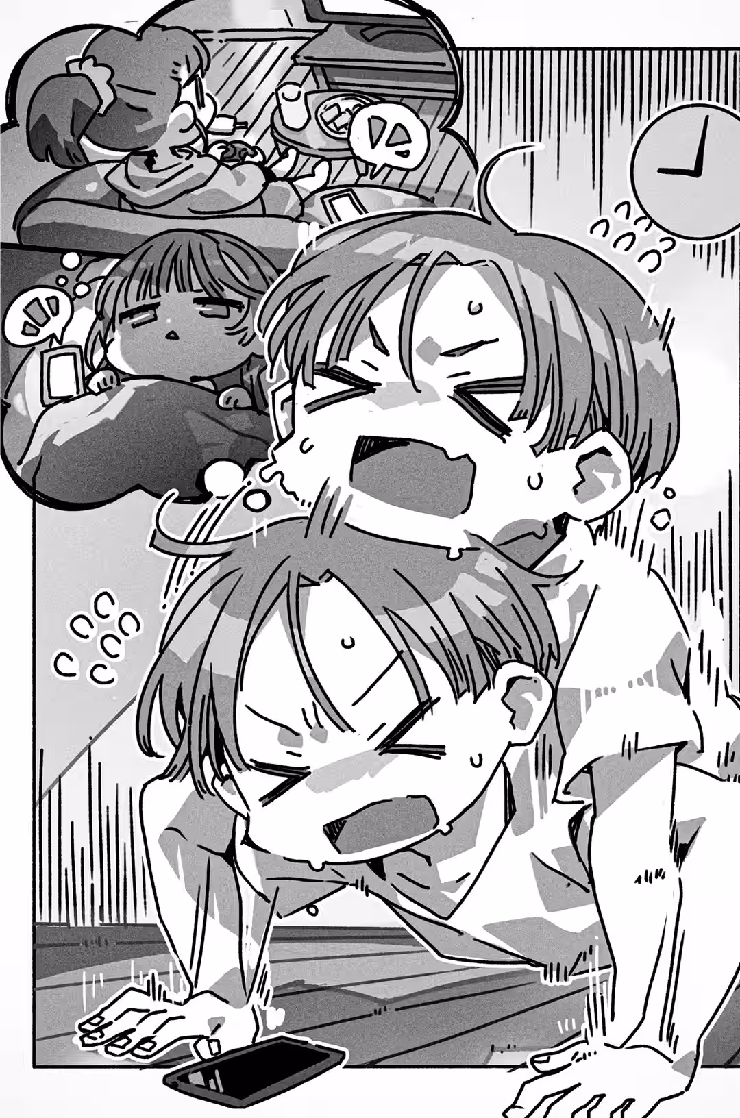 Sousei put his phone on the floor and swapped over to doing push-ups.