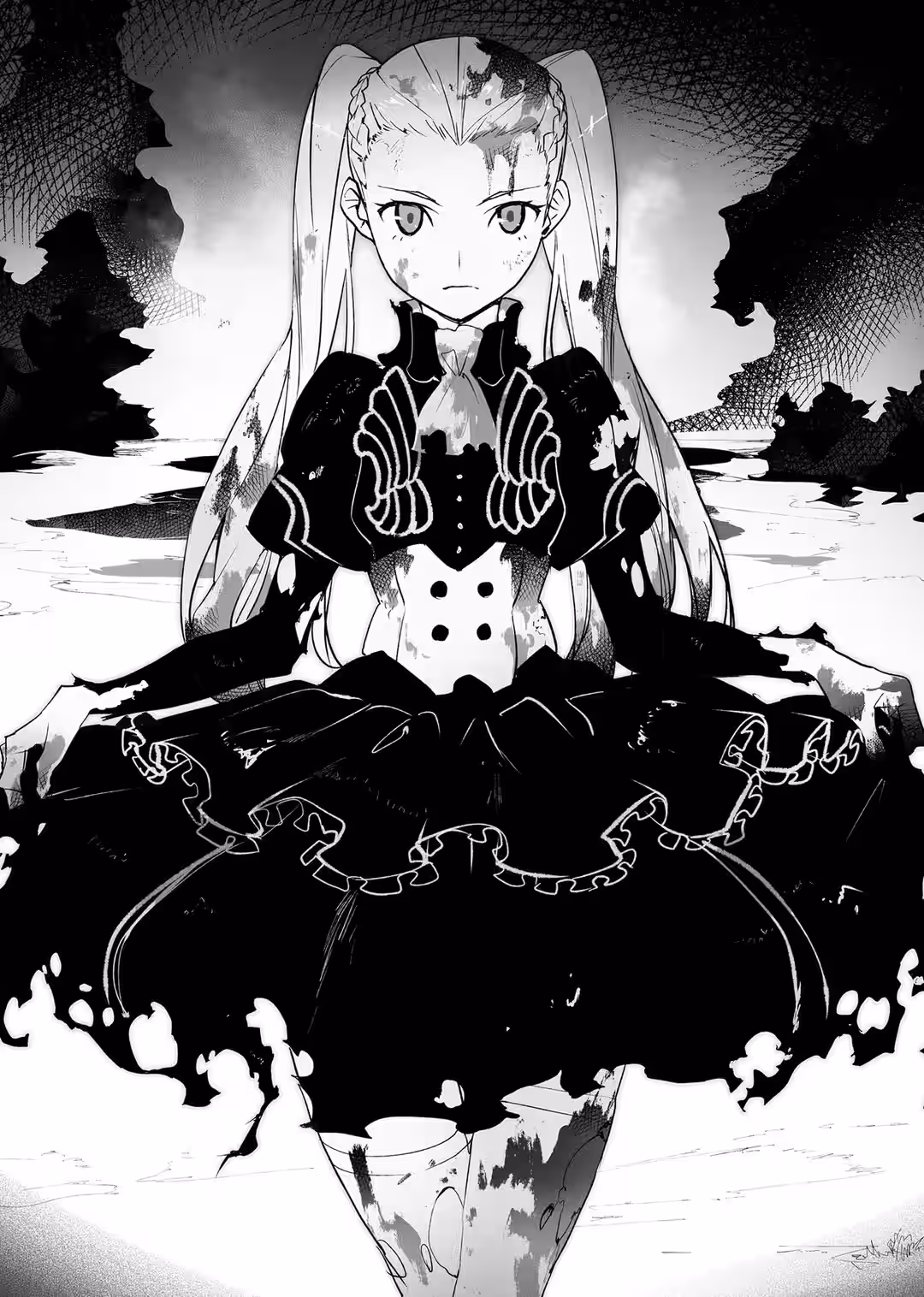 Even with the illumination of her staff, riding hard through the night was too reckless, and she’d reaped the consequences. The horse’s hoof had probably gotten caught on a rock along the curve. The white horse had spit up bloody foam, and by this point, it wasn’t even twitching. The girl’s limbs were twisted, her skull was cracked open, and blood soaked her form.