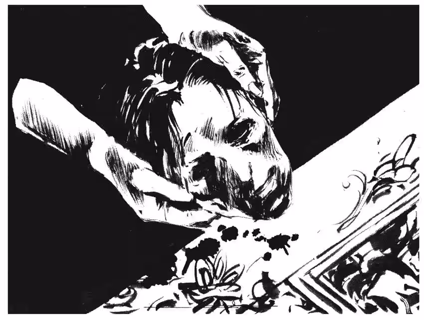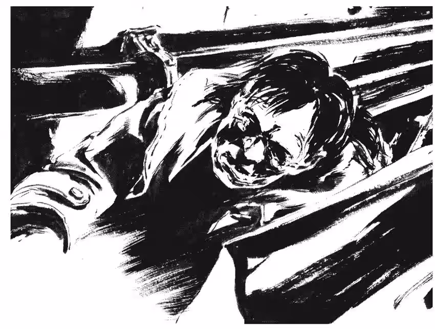With the man’s finger—torn off at some point during the melee—clenched between her teeth like a cigar, she was heading back inside when she saw something out of the corner of her eye. She glanced over her shoulder and caught a glimpse of that face.
