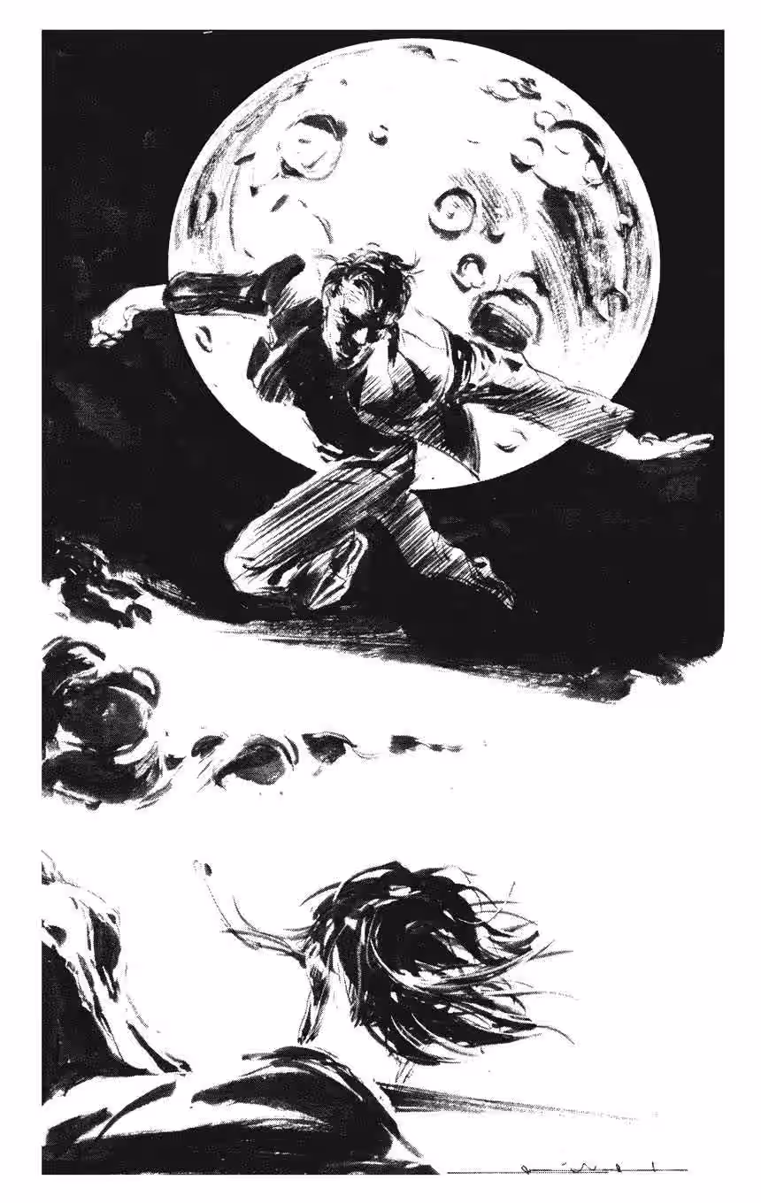 He set off running. Two dogs jumped up at him from below. His right hand flashed. The two dogs died. By the time the bodies crashed to the ground, he had sprinted to another wall a dozen yards off.