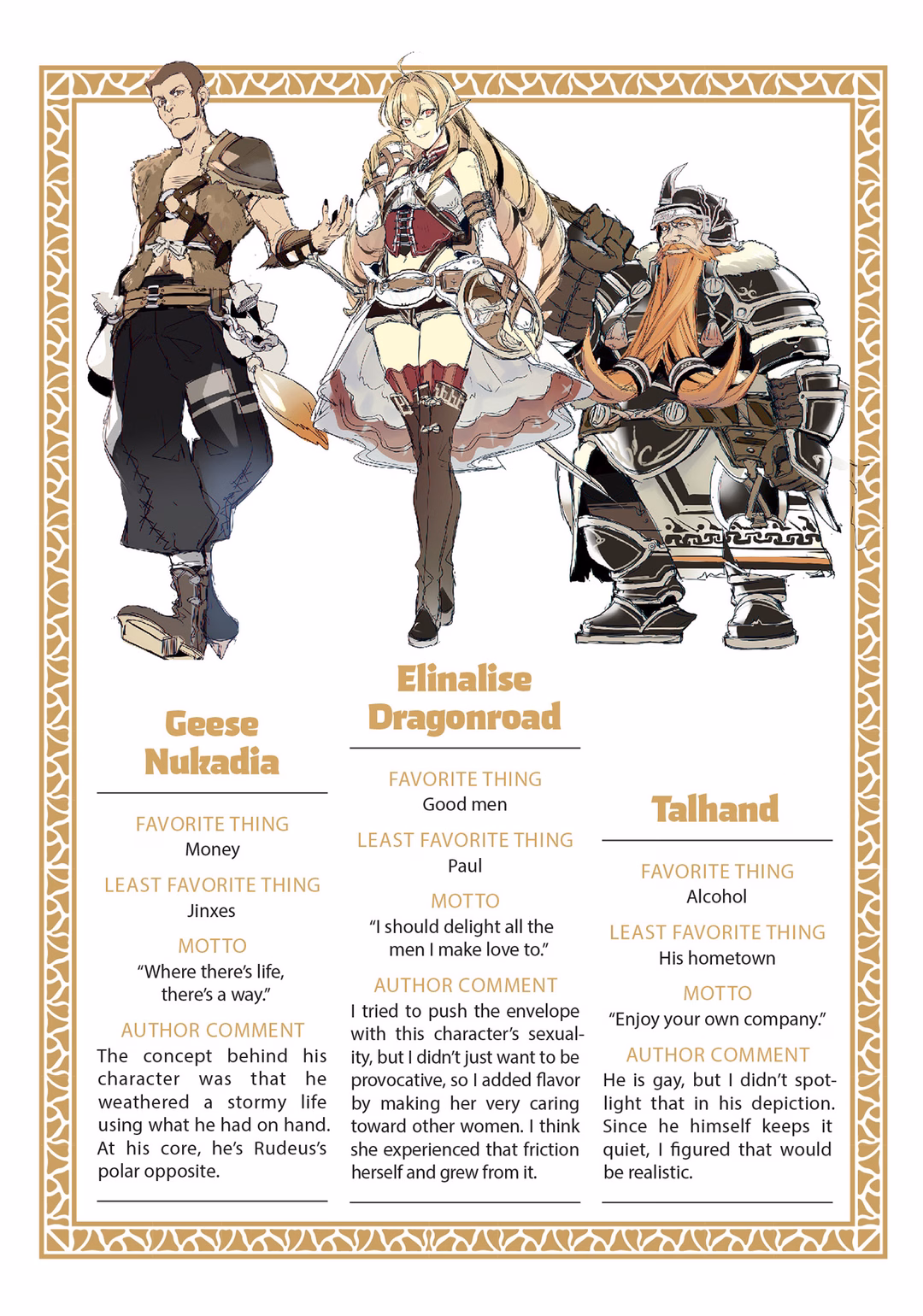 A: The first thing that comes to mind is Roxy’s graduation test, followed by the reunion with Paul. Other than that, I have a strong memory of the teleportation labyrinth arc and the story about Zenith and the Blessed Child of Memory.
