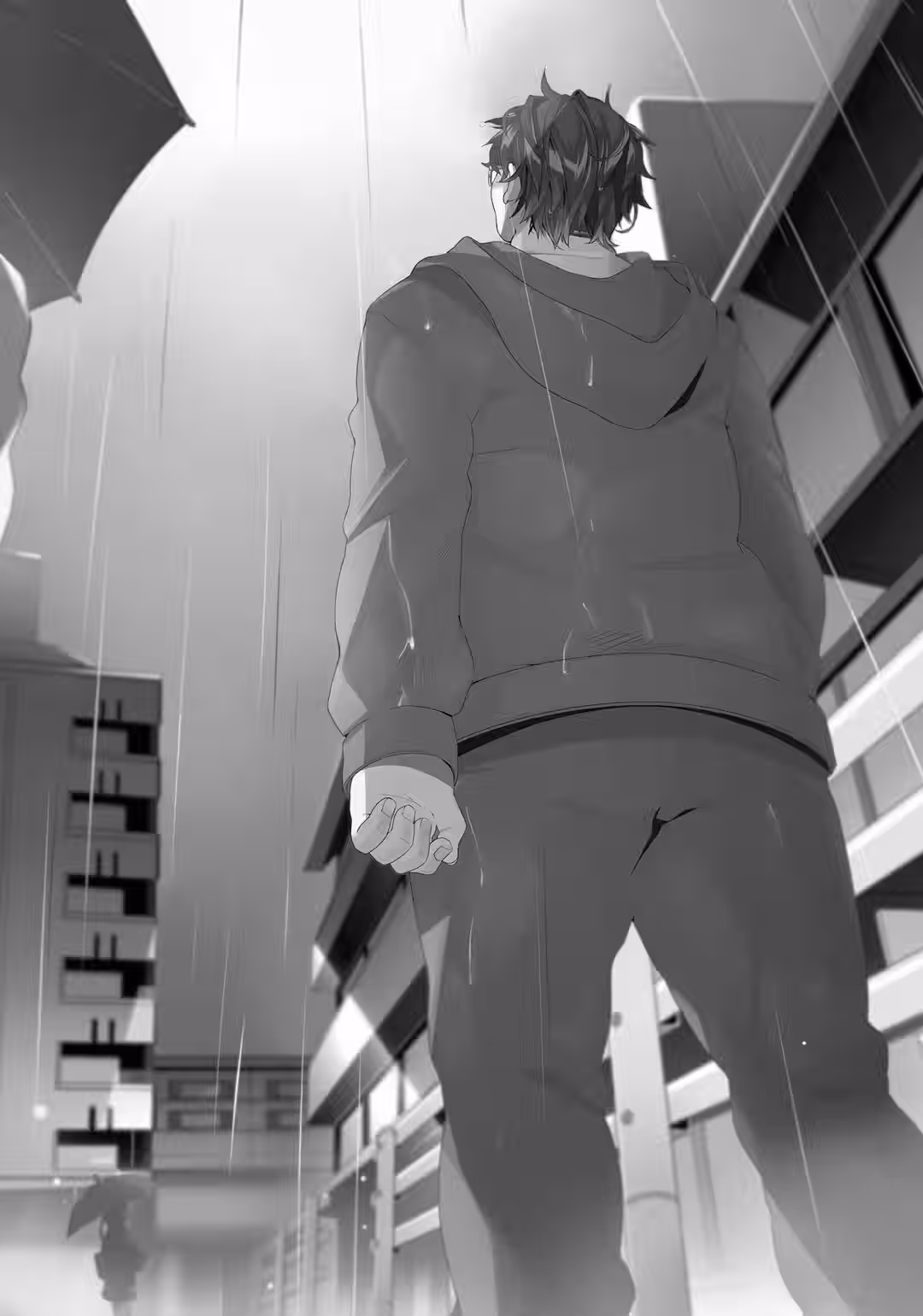 Suddenly, amidst the downpour, I heard people arguing. “Hm?” I muttered. Was someone having a fight? That wasn’t good. I didn’t want to get involved with that sort of thing. Even as I was thinking that, however, my feet kept carrying me in that direction.