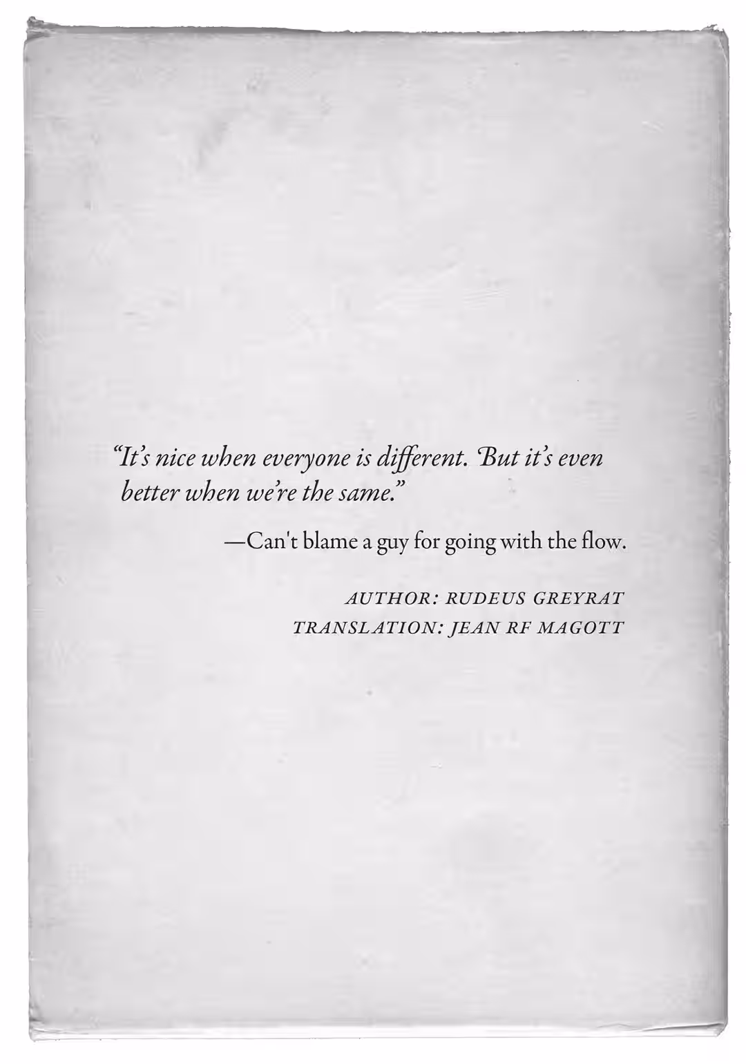 The fat man removed his hand from the girl’s body. He dipped his fingertip in a glass of wine and jammed his finger, dripping with purple liquid, into her mouth. The girl didn’t try to stop him, but merely licked at it. “There’s nothing to be done,” he said. “I’ve watched them quietly this past year. If they’re going to be Your Majesty’s enemies, Prince Grabel, then naturally we must dispose of them.”