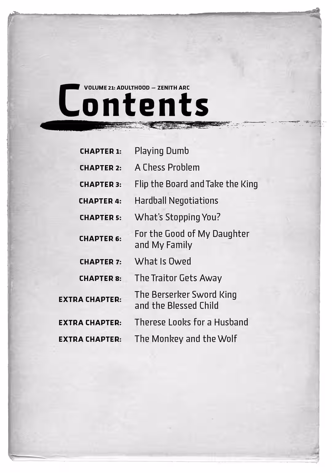 I was born in a little village in the south of the Demon Continent. I was the third of five kids of the village chief. It wasn’t much, but we lived a little freer than your average villager. Back then though, I felt plenty restricted. See, my future wife was chosen for me when I was born, as well as my future job. The job of a son of the village chief was to live the life he was told to. So long as I pulled that off, I could do whatever else I wanted.