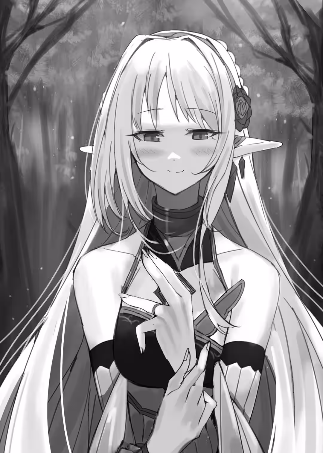 Night nodded, buying my response, then fell back into deep thought, so I left him there on the table and exited the building. I found my way to a forest on the outskirts of town, where it almost felt like the trees were welcoming me as a member of the high elf nobility. We elves had always lived in harmony with the forest, after all. Long ago, we grew tired of the wars of men who were seeking wealth and dominion, and we instead became the stalwart guardians of the Sacred Forest, fearing that the other races might cut down the Holy Tree were they to get their hands on it. And the Holy Tree was not to be disturbed under any circumstances.