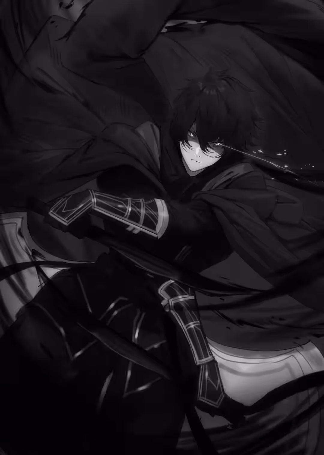 I spent a good while monitoring the goings-on in and around the building. After some time, I rose to my feet with a sigh, drew my twin Yato-no-Kami daggers, and readied for combat. A man emerged directly in front of me, seemingly out of thin air. Just like me, he was garbed all in black and lightly armored. Another assassin had arrived to get in my way, just as I had feared. Obviously, Gram had no shortage of enemies who might pay to see him offed, but I’d hoped could get through tonight without encountering any other assassins.
