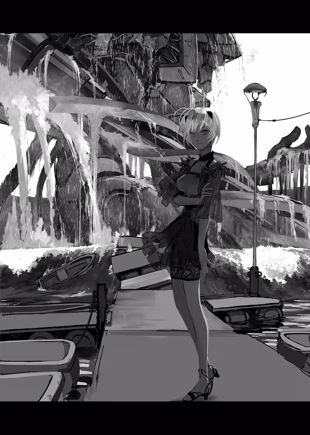 During the Battle at Nerv HQ, the Geofront’s dome ceiling had collapsed onto the subsurface, the tranquil, subterranean space devastated by bombs—courtesy of the Japan Strategic Self-Defense Force—and gusts of wind from the swarm of mass-production Evangelions.