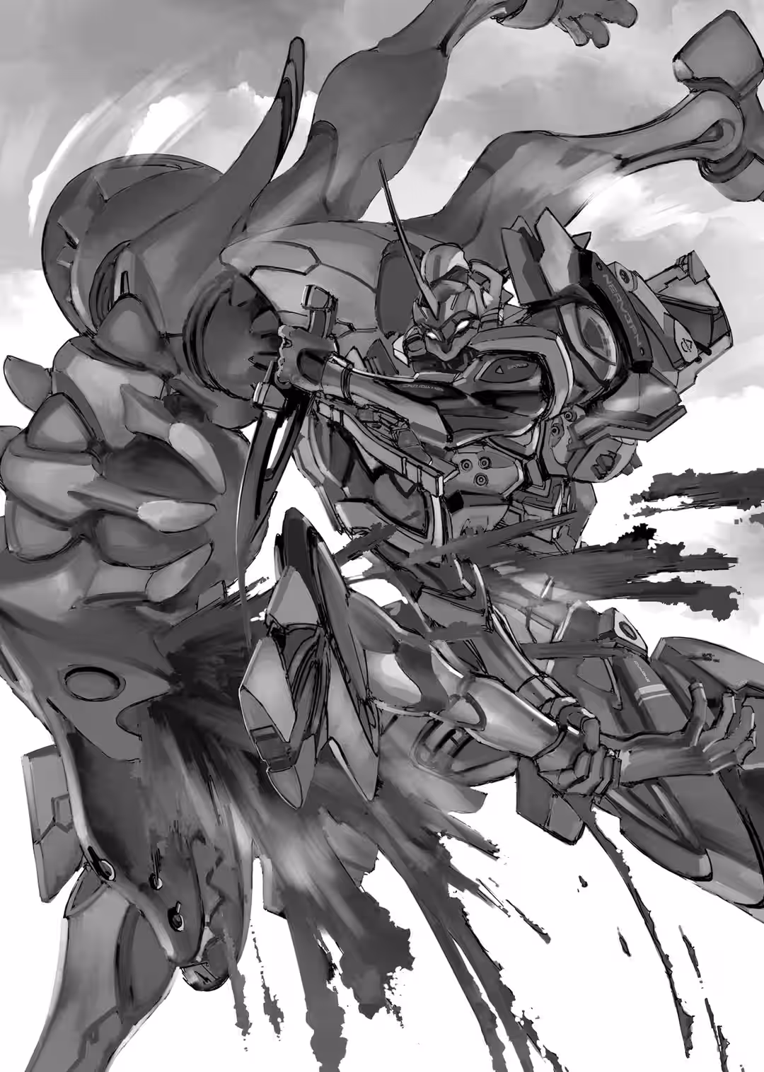 The staff slid across the edge of the blade, producing a shrill squealing, like a freight train slamming on the emergency brakes. The charging Carrier had too much momentum to be stopped, and it passed in a shower of sparks, its right shoulder hurtling toward Super Eva, the glowing Q.R. Signum projecting its shield.