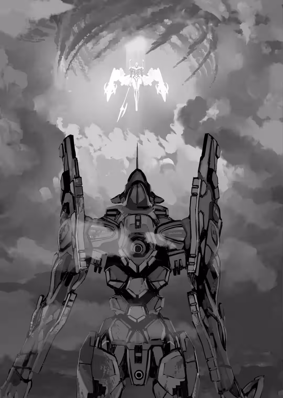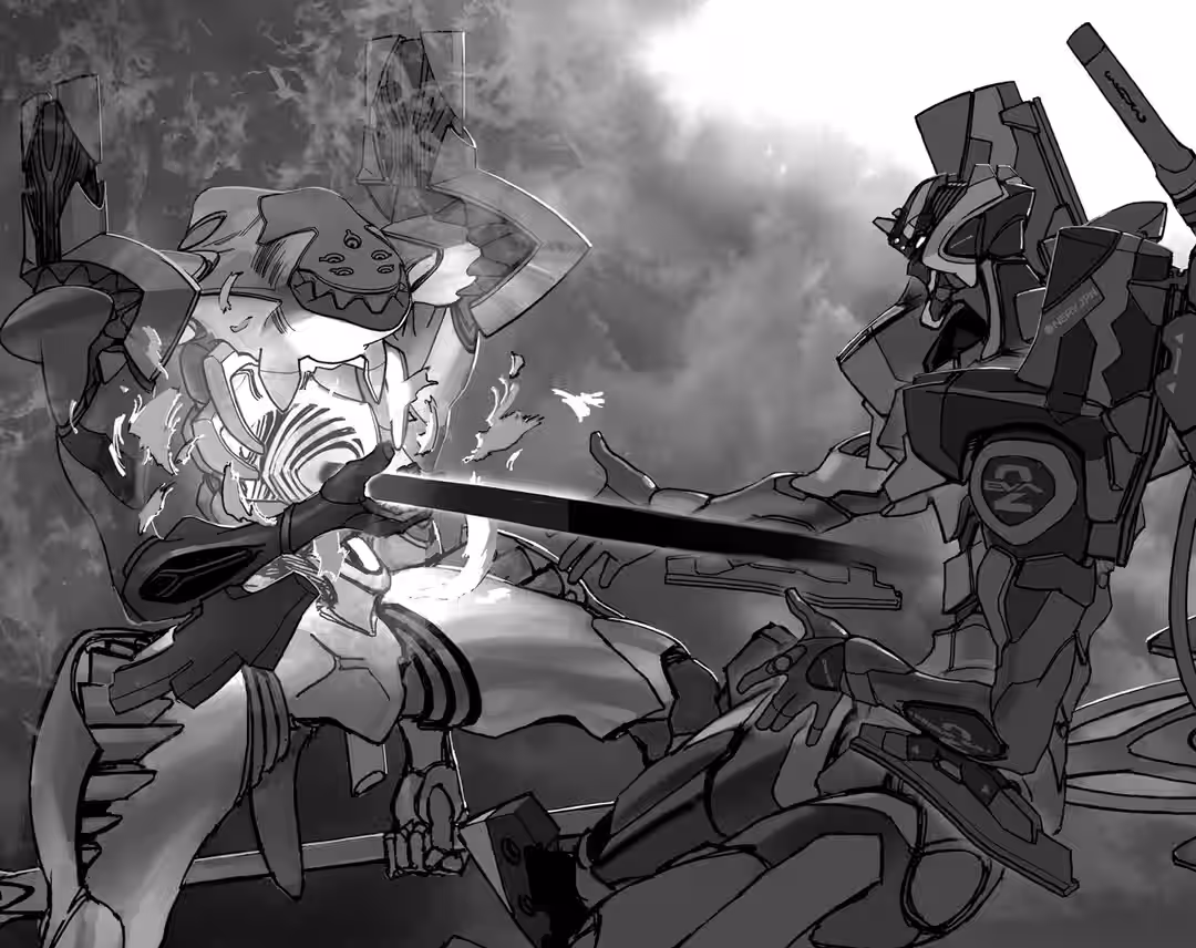 Eva-01 cupped its hands together, as if scooping up water, and raised them to the clear, blue sky. From Katsuragi Misato’s perspective on the ground, the giant’s gesture seemed like a supplication.