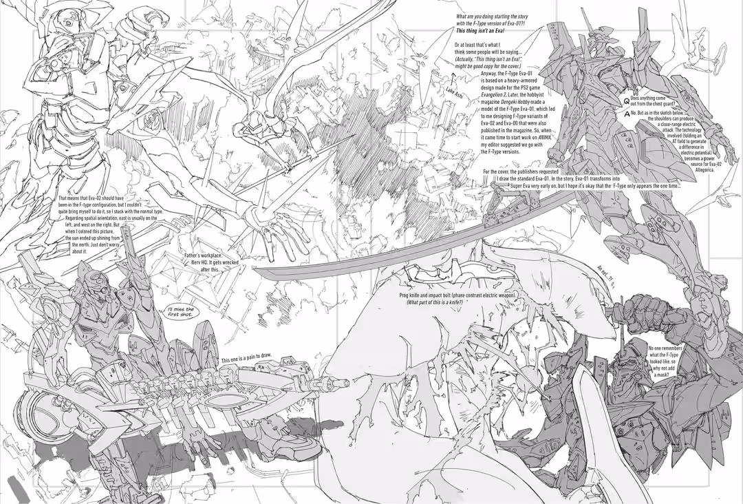Neon Genesis Evangelion: ANIMA was a serialized, illustrated novel printed in Dengeki Hobby Magazine (from publisher ASCII Media Works) from 2007 to 2013. During pre-production on The End of Evangelion, Director Anno asked me if I could develop a spin-off, separate from the main continuity, like the ones Gundam had. I thought, Sure, I’ll give it a try! And that was how ANIMA came about.