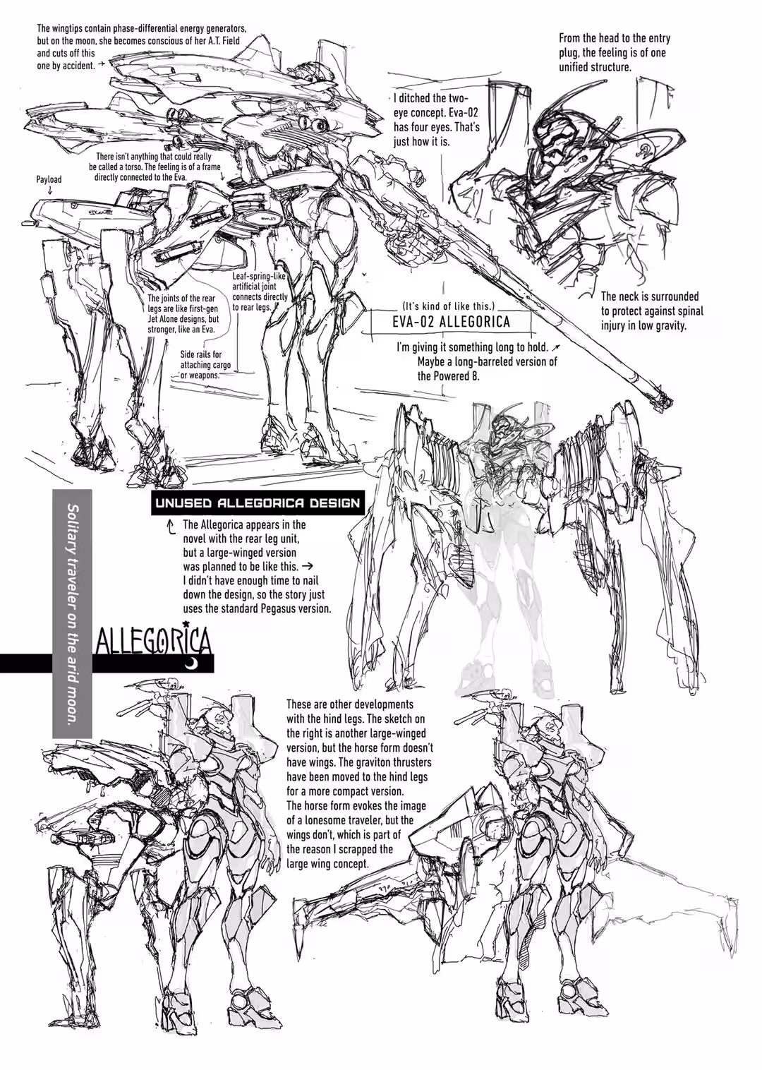 From a distance, it strongly resembled the Stage 2 Eva-02, and though this giant didn’t have four legs, its wings looked a lot like Allegorica’s. This Eva likely carried the same type of N2 reactor and graviton thrusters.