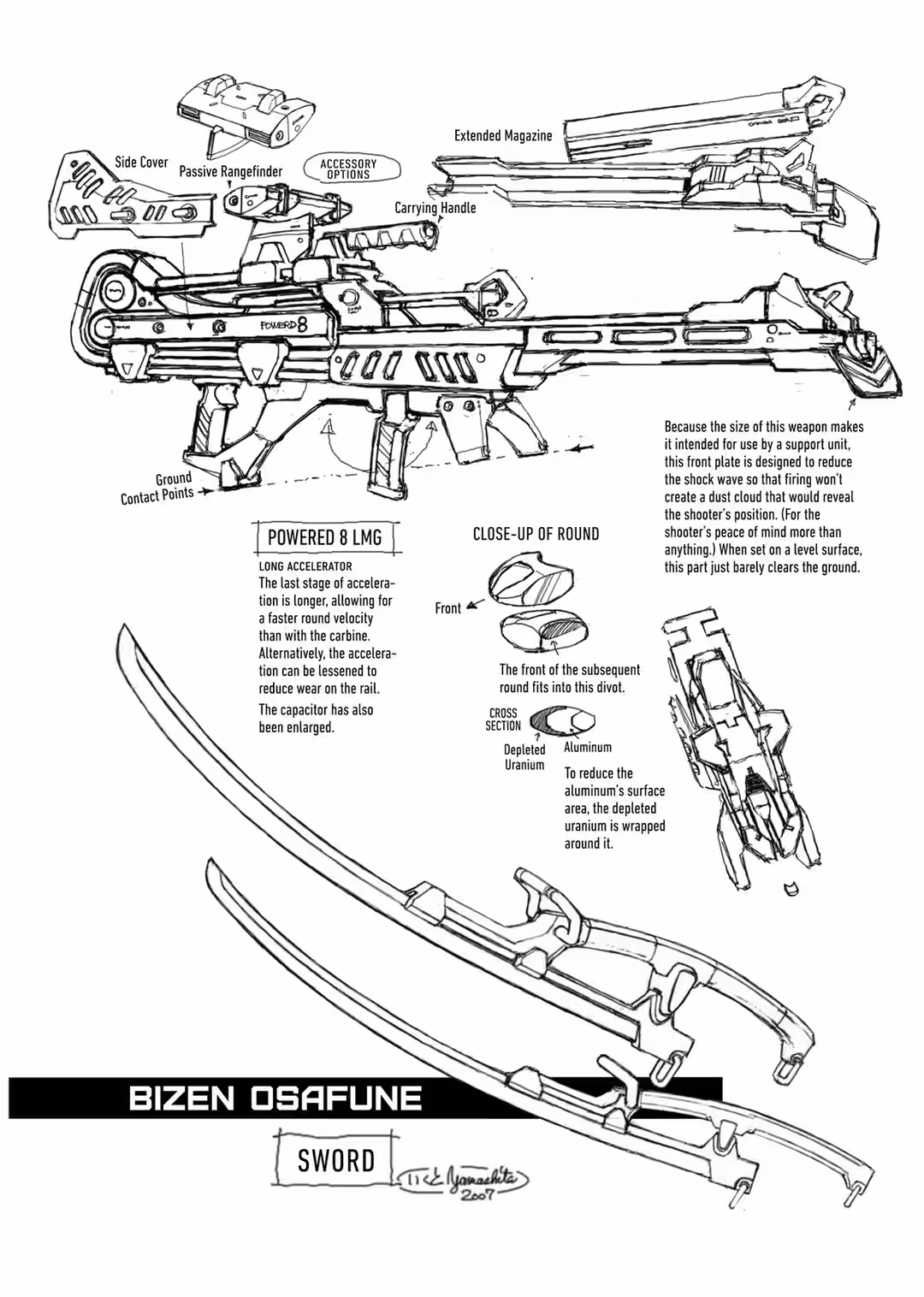 Unlike Evangelions, which grew into humanoid shapes for reasons not understood by science, the N2 Reactor-powered Akashima was humanoid by design. Its legs could traverse any terrain, and its arms allowed it to hold weapons, to fire in any direction, and—at least theoretically—to pin down an unruly opponent in close combat. Its body offered more than mere structural support; it provided a frame for protective armor and could withstand unexpected impacts if necessary. Depending on its configuration, the Akashima could even fly, which improved the Japan Strategic Self-Defense Force’s ability to respond to developing situations quickly.