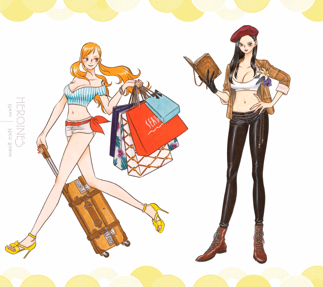 As a sailor, Nami was strictly limited in space for personal belongings. It was difficult to put together a good wardrobe when you knew you’d be rewearing each piece so often. Ordinarily she would never buy pumps with four-inch heels, since there was little chance she’d wear them. But when she found out her ship would be stopping by the island where the world-famous Lebno Listchaque store was located, the urge to have a pair overcame her. She had discarded some of her favorite clothes to make space in her closet, then visited the store by the port and agonized over which pair to buy before finally settling on those royal blue satin heels.