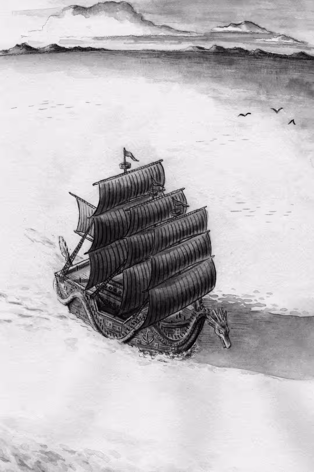 I jump out the cage door and beat my wings as hard as I can. My body launches upward, where I catch the wind and start to ascend. In the distance, I can see the water. There is a collection of big ships at the sea’s edge. I have never seen the ground from this height before.