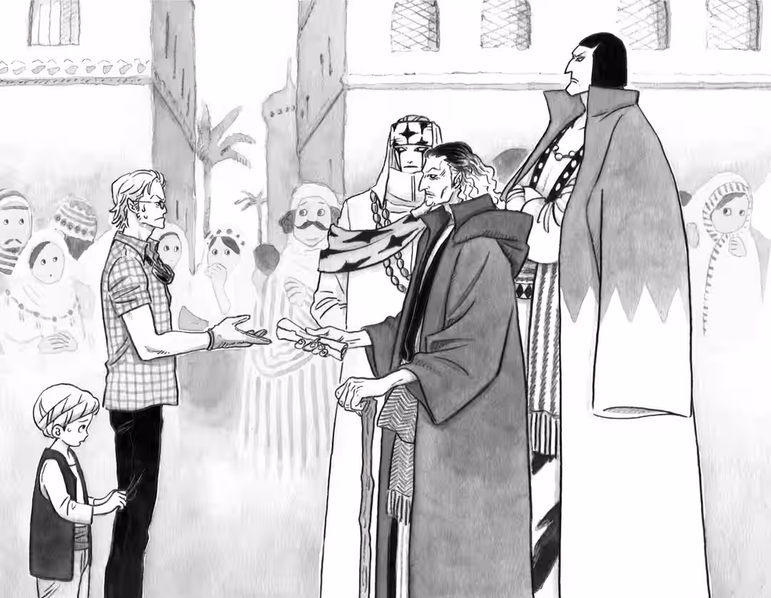The old woman’s relatives put me up for auction, and the winning bid was from a politician in town. The politician was connected to some pirates, and fed them useful information in exchange for a portion of the pirates’ spoils. The townspeople were tariffed into poverty, but the politician’s pockets were happily lined. His wealth meant that I was able to live a life of luxury. Then Nami came and stole all of the money he’d saved up. She told the newspapers about how the politician was colluding with the pirates. He was forced out of his job, and had no choice but to let me go.