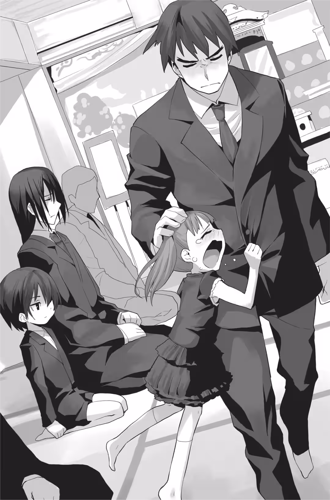 My cousin Kei, who’s the same age as me, was sitting on the other side of the table. He’s never shown much emotion, even as a little kid. His face is like a mask, and he’s really pale. Plus, he never cuts his hair, so his bangs cover about half of it.