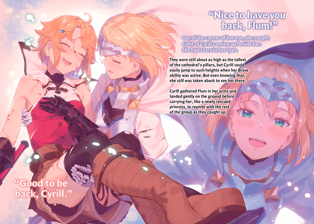 It’s an amazing manga all around. Not only do you finally get to see our favorite receptionist (who was never illustrated in the novel), but you also get to see the members of the heroes’ party looking pretty cool, along with some original scenes between Flum and Milkit that’ll melt your heart. I really hope you pick it up when you’re grabbing this one. Origin agrees!