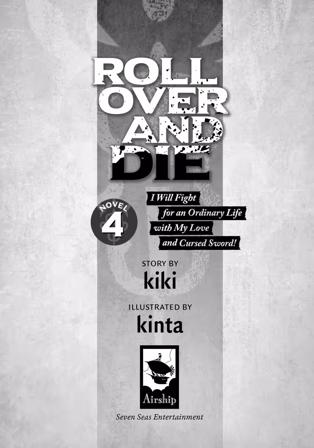 HELLO, THIS IS kiki, the author of Roll Over and Die: I Will Fight for an Ordinary Life with my Love and Cursed Sword. Thanks for picking up Volume 4.