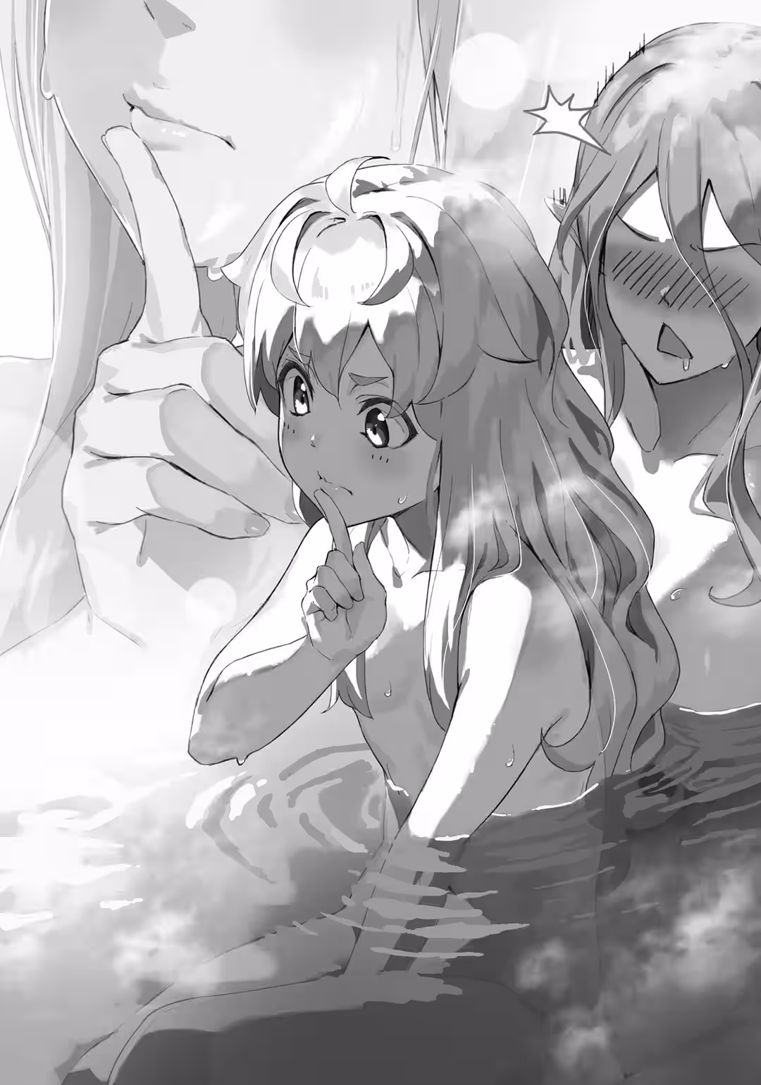 Sure, Neigass had hugged and cuddled with her many times in the past, but feeling their skin touch was something else entirely. Sara’s face turned pink amid the faint wisps of steam that rose from the water. Neigass merely giggled maniacally to herself. She looked like she couldn’t be happier.