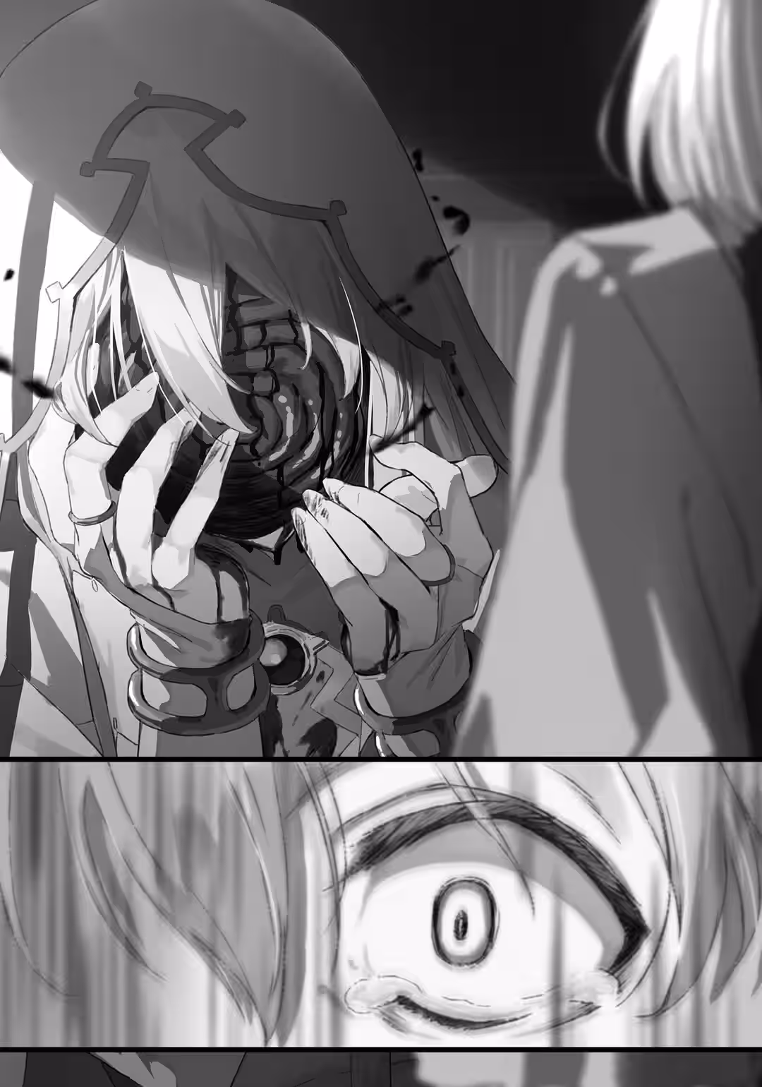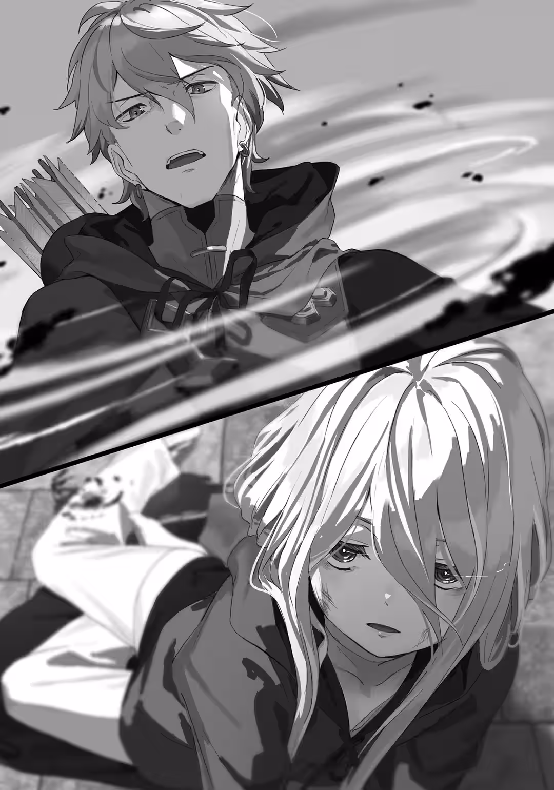 Ottilie lifted Nekt. Accompanied by Ink, she headed back toward the facility entrance, which seemed to still be safe at least. Just as Ink was nearly out of sight, Flum stumbled, as if a thread in her had been pulled to the breaking point. Cyrill rushed to her side to help her up, while Flum managed a weak smile.