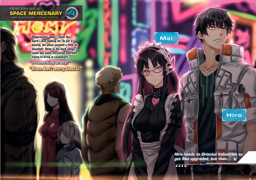 “Yeah, I’ll just grab a merchant ship to get back. I’ve got negotiations anyway, so I’ll be in this colony for a while.” With that, Keats tapped his floating suitcase. I was worried that someone might steal it after we left him, but it probably had some sort of security mechanism.