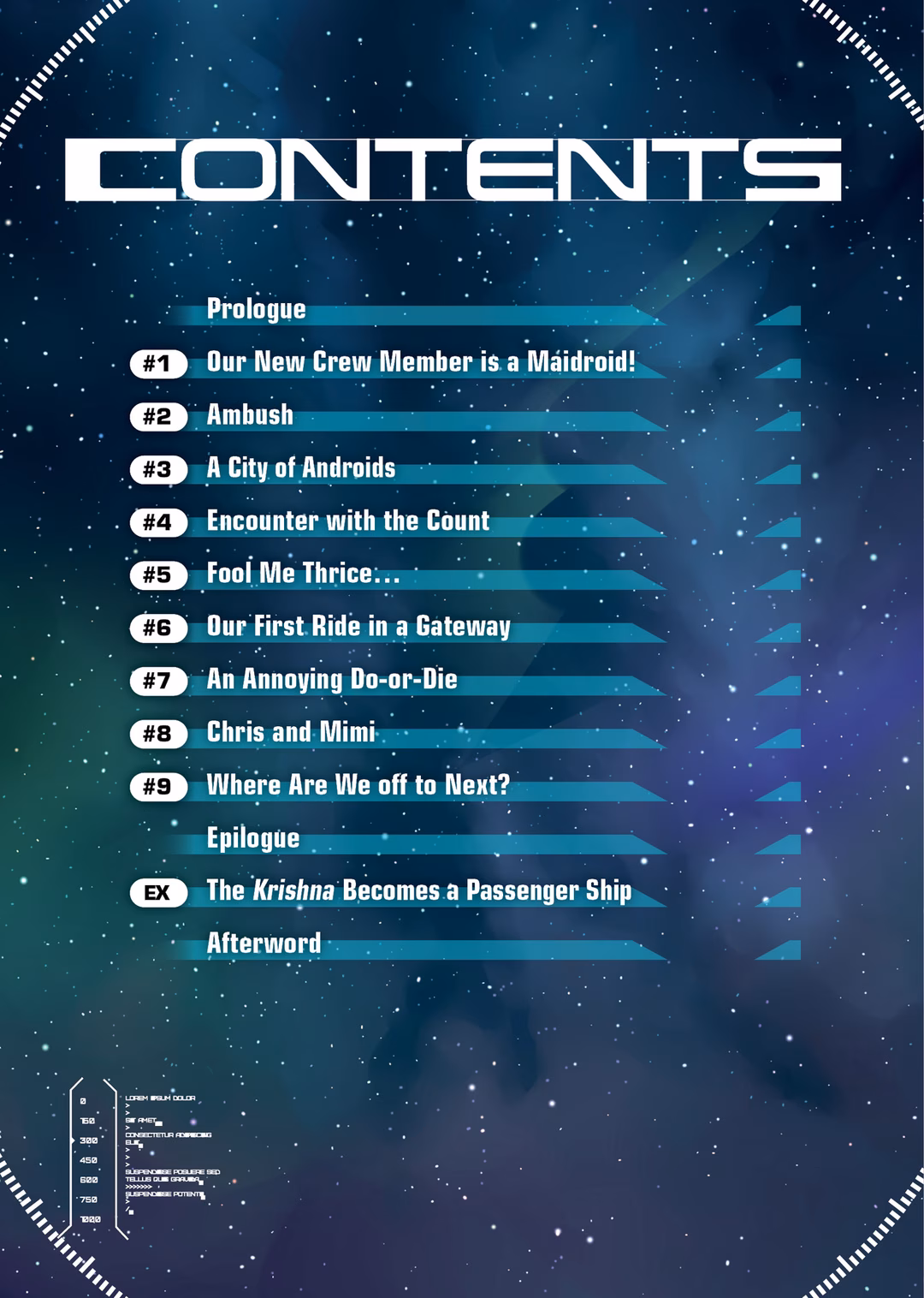 The Krishna had three bedrooms. One was the captain’s quarters, where I stayed. The other two were originally made for two crew members each, but Mimi and Elma both enjoyed having a room to themselves. We currently had no room just for Mei, so she was using the maintenance pod and other equipment installed for her in the cargo bay as her own room.