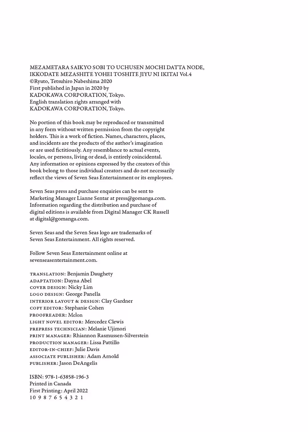 THANKS FOR READING volume four of Reborn as a Space Mercenary! It’s me, Ryuto!