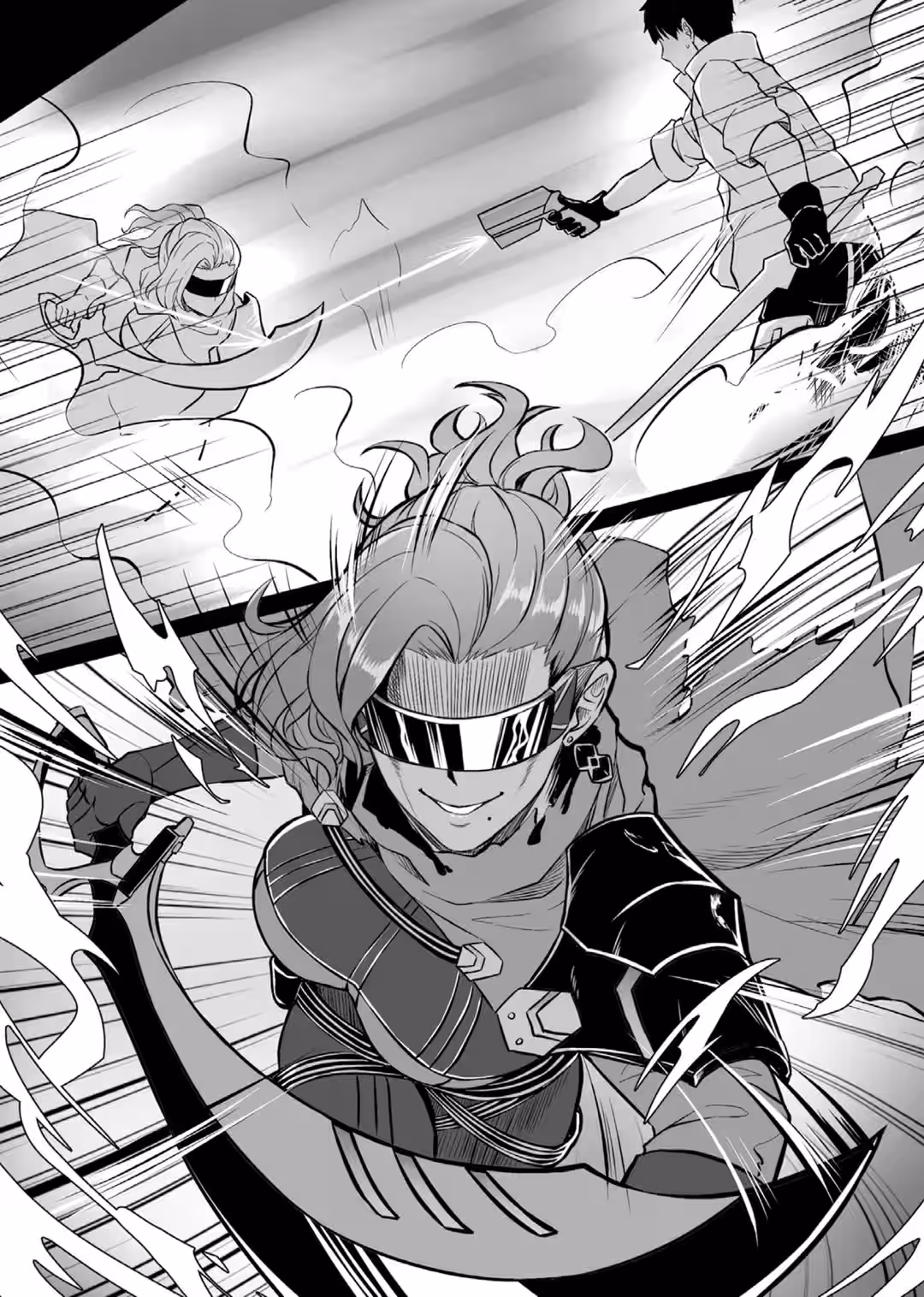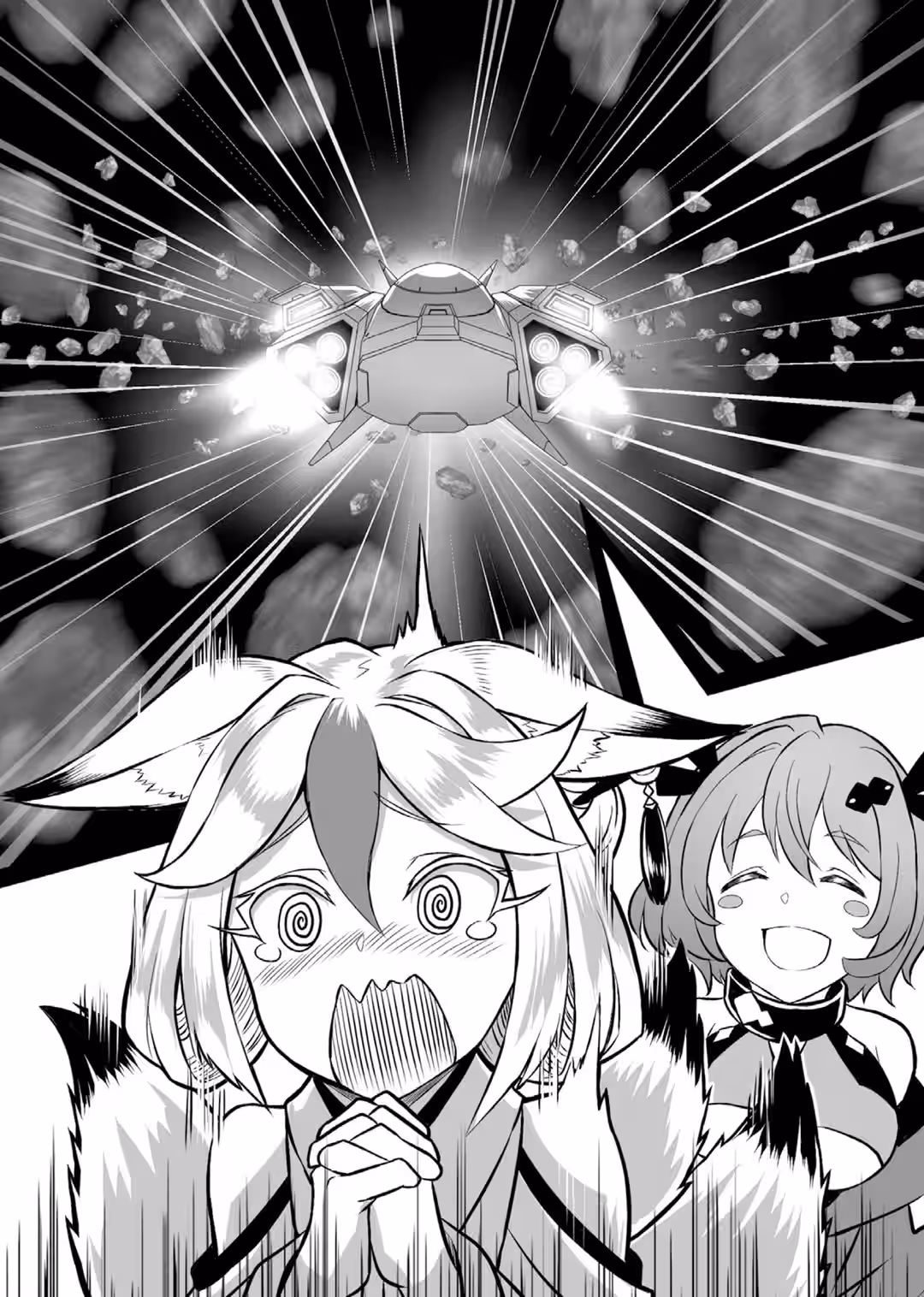 I “showed off,” eh? She’s not wrong. I had opened a huge hole in the rear entrance to the space pirates’ base, then charged in on my own. Inside, I’d massacred the pirates with my swords. Now that I thought about it, I’d turned their base into a scene of carnage. Not that it bothered me.