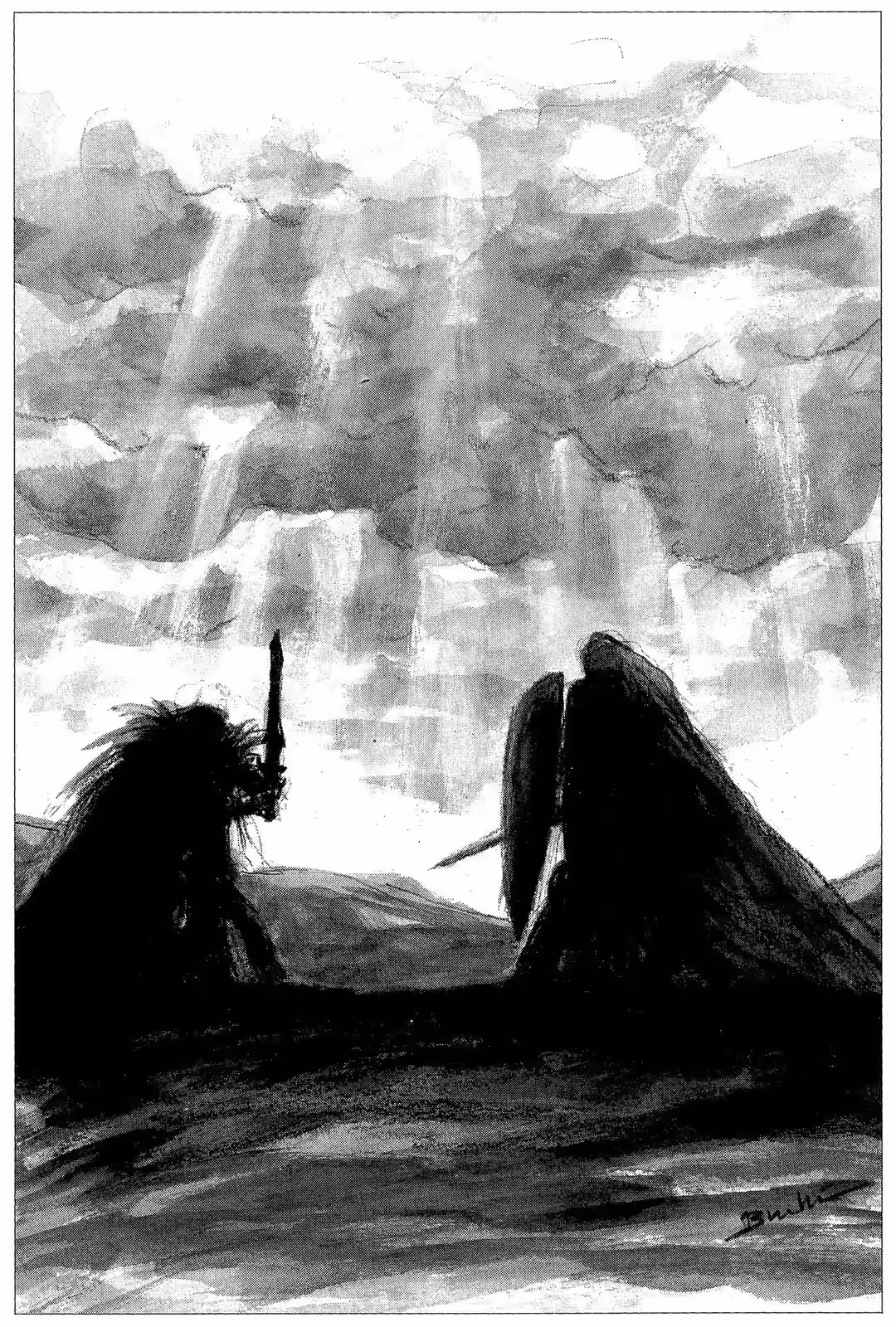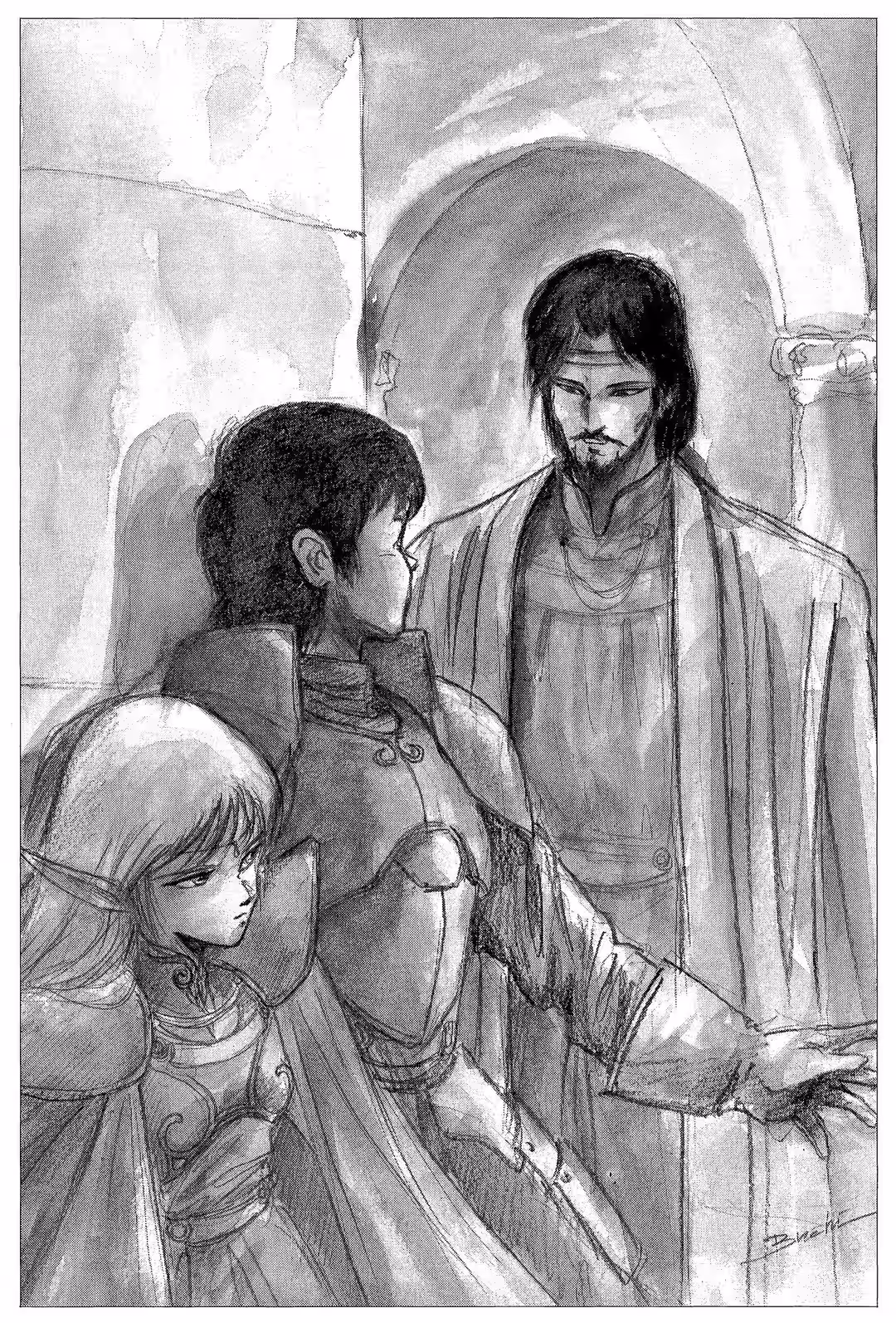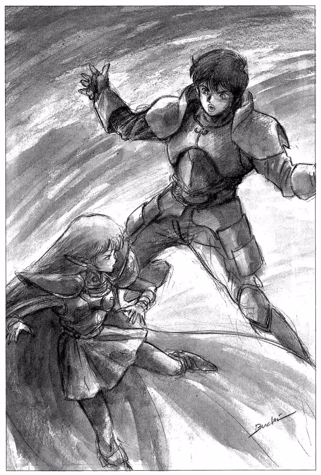 “Poor Ghim.” Deedlit couldn’t bear to look. She buried her face in Parn’s chest, sobbing—perhaps the first time an elf cried over a dwarf in the whole history of Lodoss.