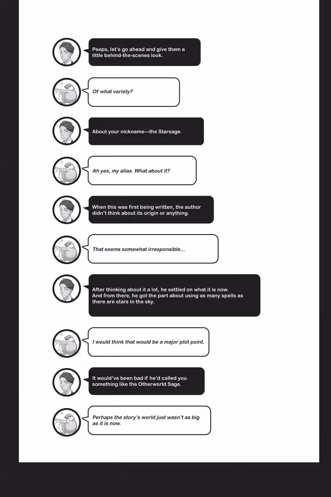 All of a sudden, he’d started up a monologue. This sparrow had quite the backstory—more than I’d ever imagined. I found myself getting curious about the rest of it and had replied before I knew it.