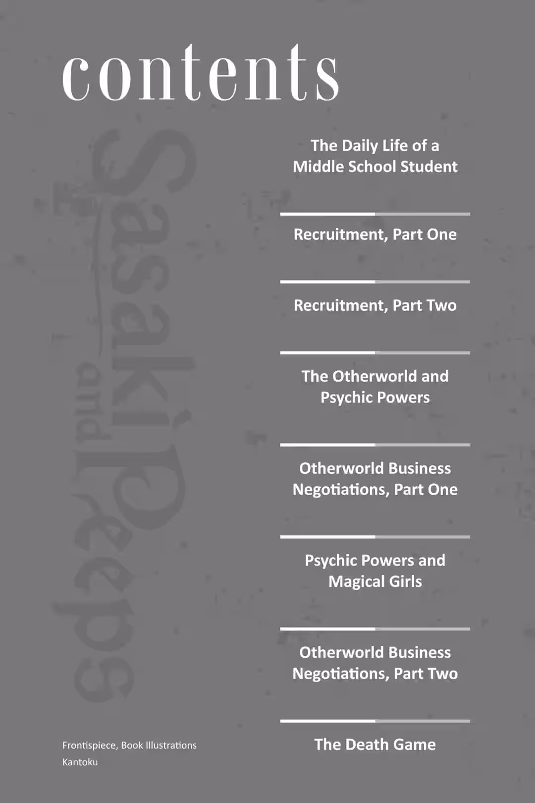 I’d like to thank everyone who purchased Sasaki and Peeps. I’d also like to apologize to those who have been waiting for so long for the web novel’s continuation.