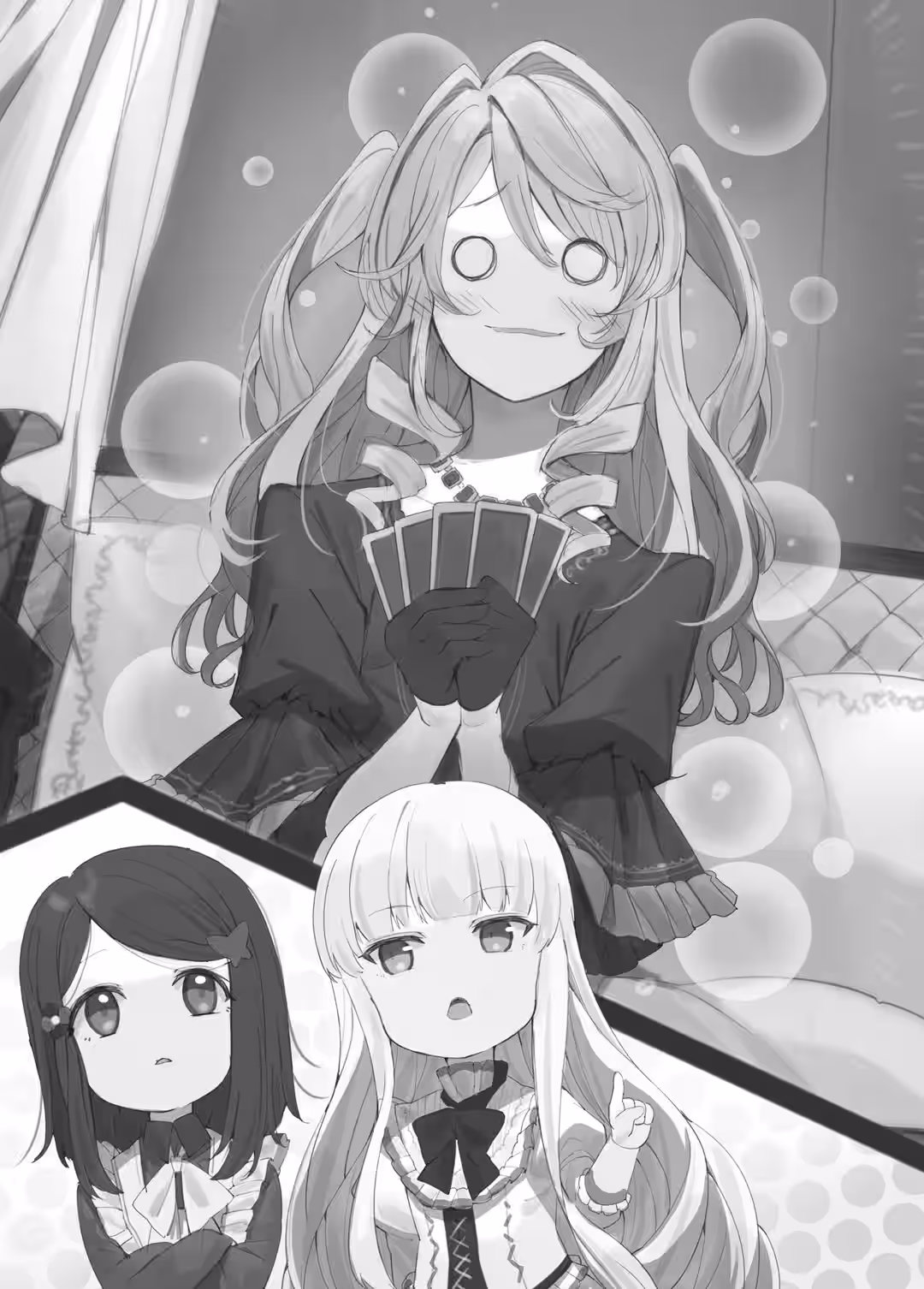 At this, the drawn faces of everyone present finally relaxed. Colette’s response bothered her, though. Mitsuha would’ve expected the girl to be more upset than anyone at the announcement of her trip, but she barely reacted at all. What is she scheming…?
