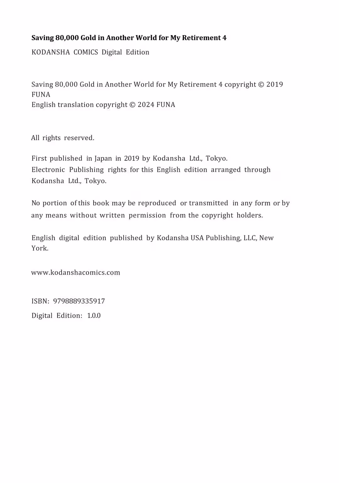 Saving 80,000 Gold in Another World for my Retirement has finally reached volume four. We’re almost halfway to my goal of making it to double digits. Thank you very much!