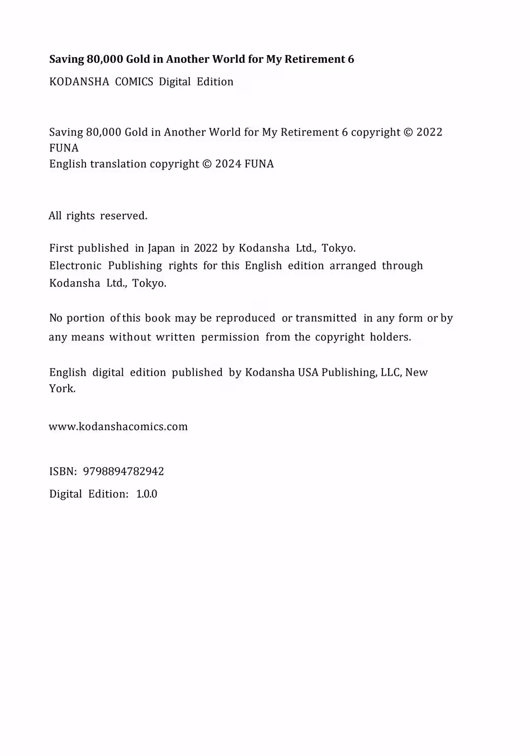 This is volume six of Saving 80,000 Gold in Another World for My Retirement.