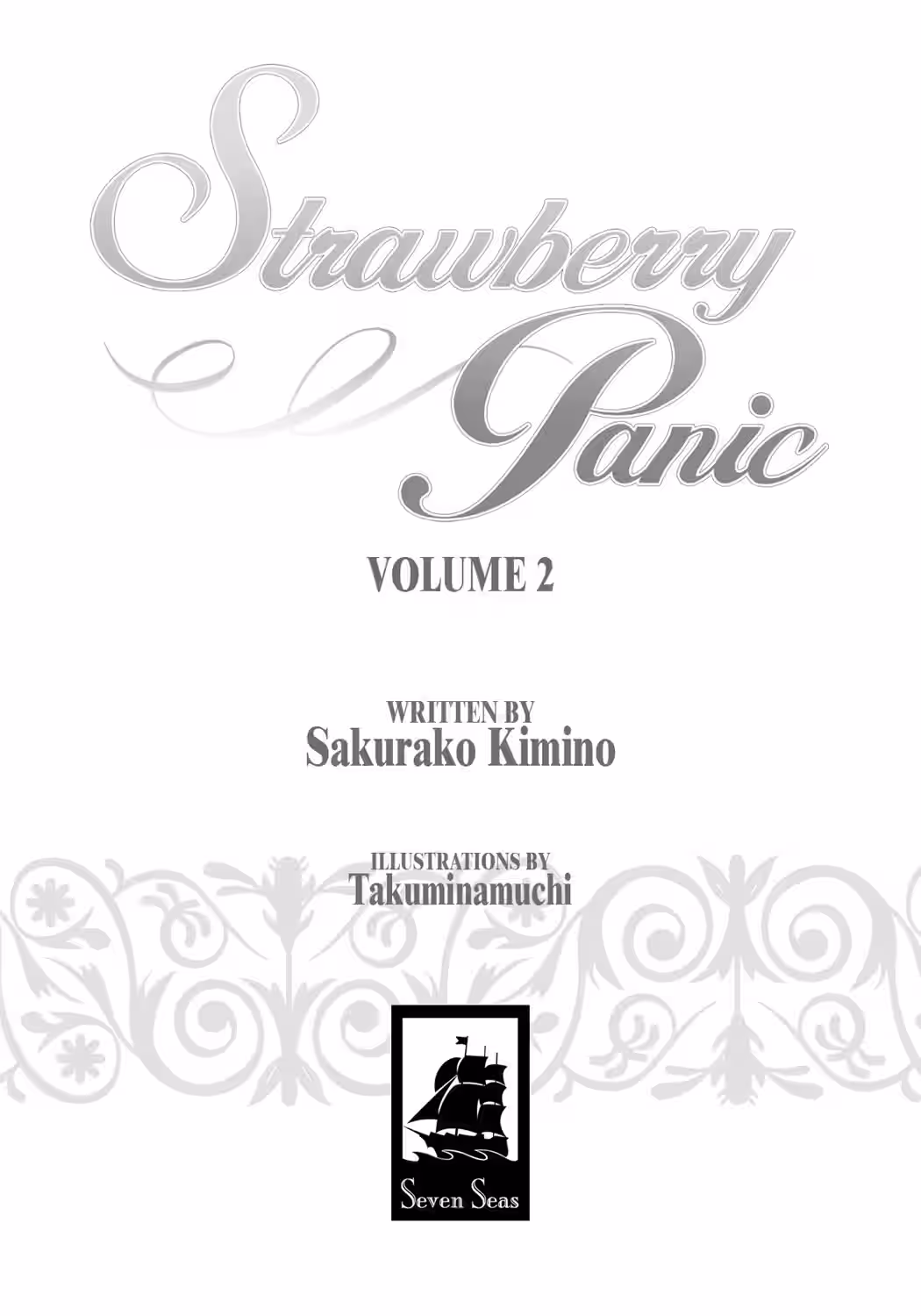 To ensure maximum authenticity in Seven Seas’ translation of Strawberry Panic: Volume 2, all character names have been kept in their original Japanese name order with family name first and given name second. For copyright reasons, creator names appear in standard English name order.