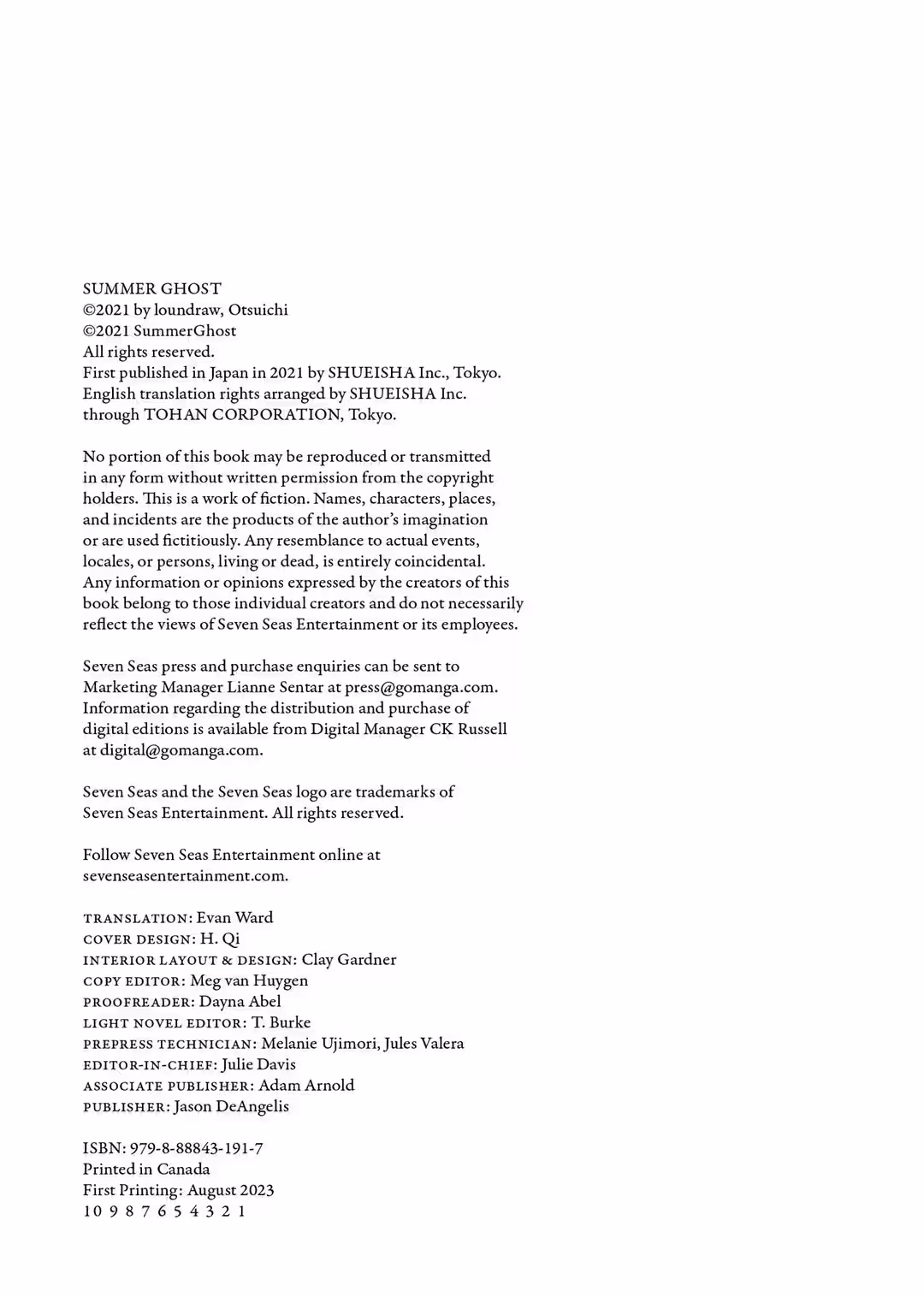 Made his debut as an illustrator in his teens and is responsible for the cover art of such iconic novels as I Want to Eat Your Pancreas and You Shine in the Moonlight. A versatile creative who has dipped his toes in such diverse mediums as animation, fiction, manga, and songwriting. In January 2019, he established his own animation studio, FLAT STUDIO, where he directed his first theatrical feature film, Summer Ghost.