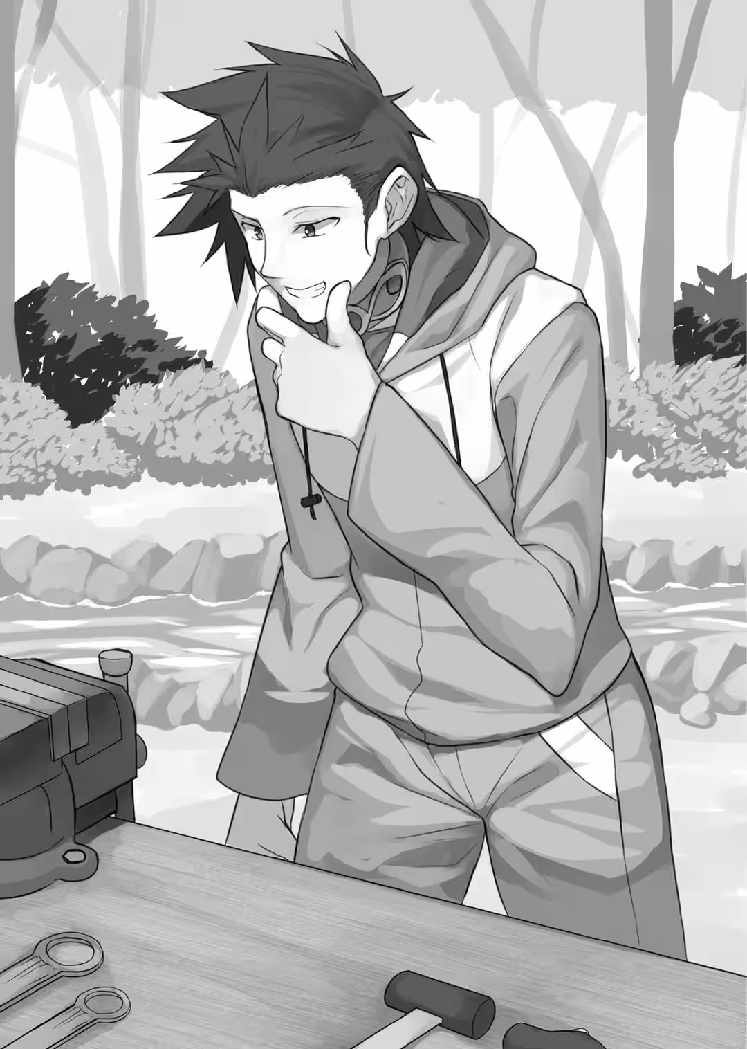 Yeah. That about summed it up. My discomfort index was skyrocketing. It was gonna be kinda sorta really hard to push my way through the thicket without proper equipment. Not to mention, my only clothes—my sweatshirt and sweatpants—were bound to get all tattered before I knew it. Still, with no means of surviving in the wasteland, I didn’t really have much choice. Off I went, all by my lonesome.