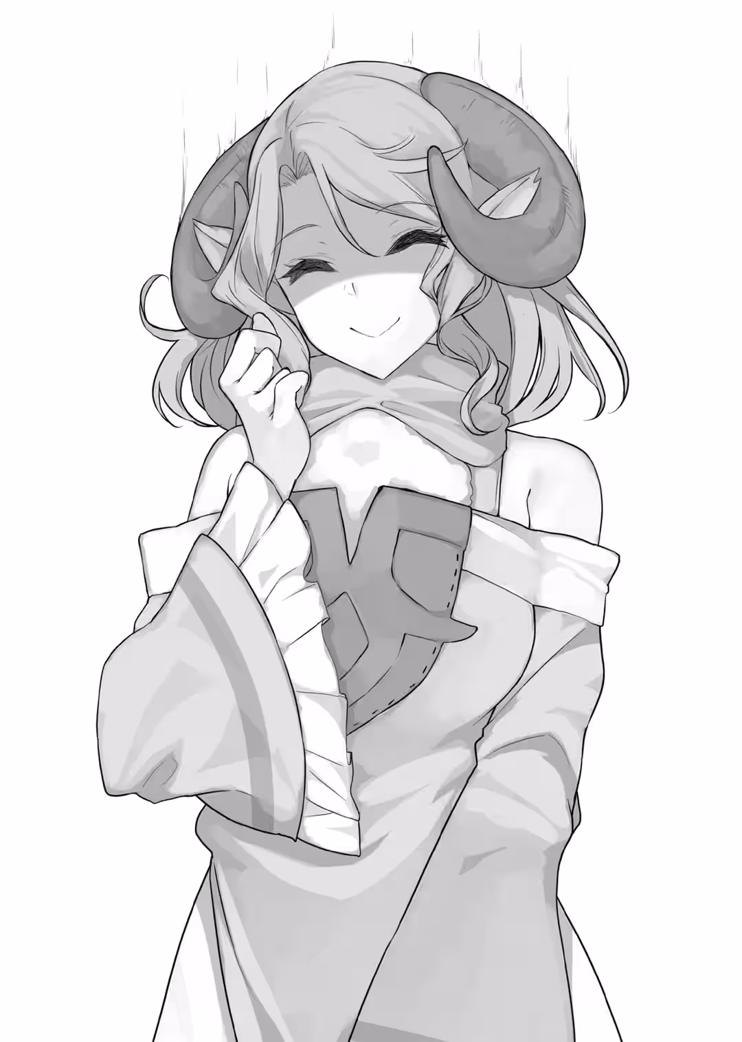 Melty, the gal with the curly horns and long (if abruptly ended) civil service career, looked up in thought with a hand to her cheek.