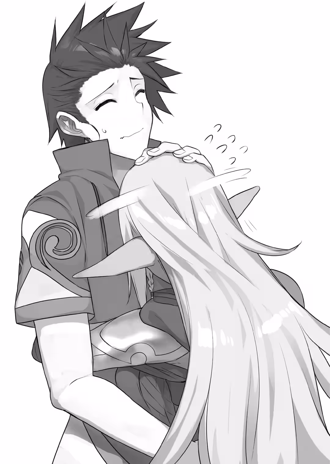 “K-Kousuke belongs to me, understood?!” Sylphy clung to me as she cried. I silently patted her in response.