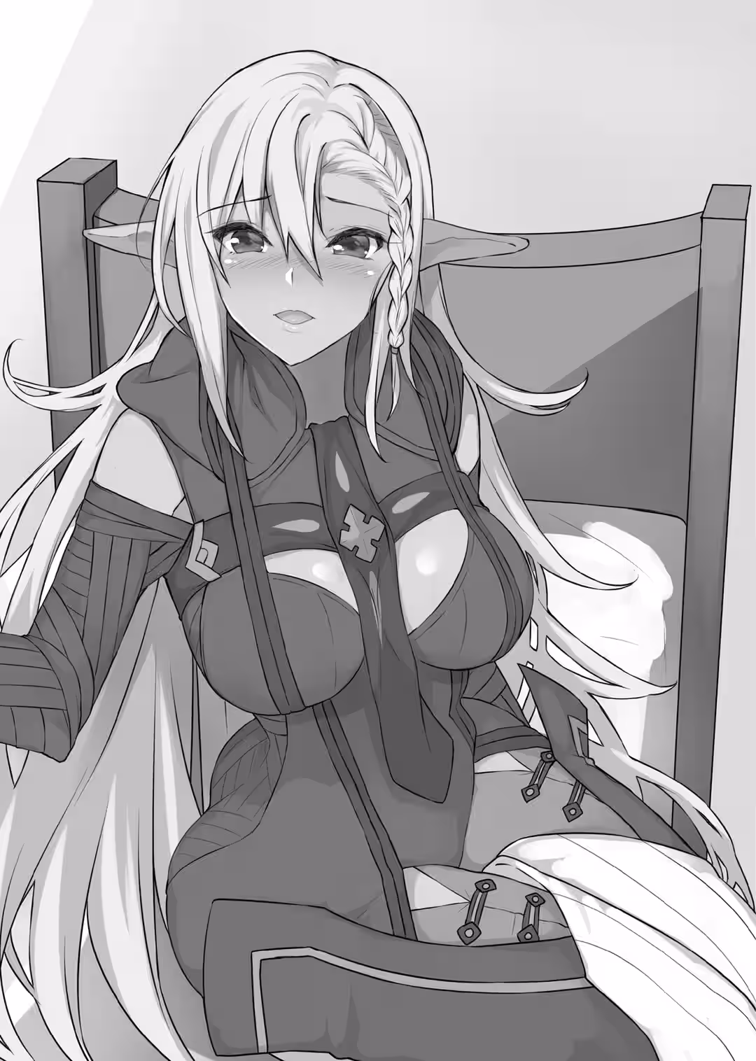 WE PREPARED TO DEPART for the Great Omitt Badlands to scout and construct a base. Our party consisted of me, Sylphy, Sir Leonard, Madame Zamil, Jagheera the cat beastfolk scout, and Pirna the harpy scout. Pirna was flying ahead of us.