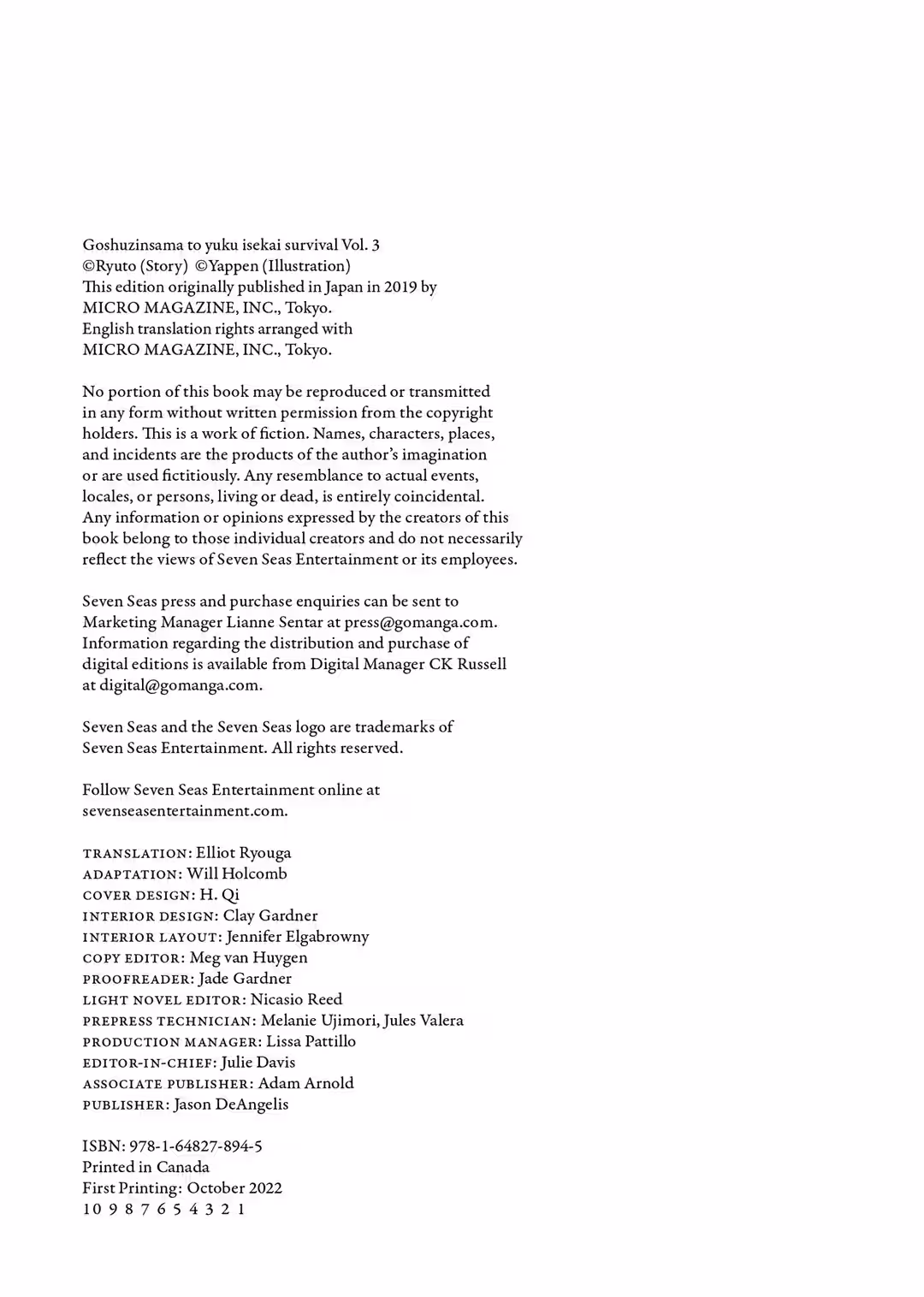 THANK YOU SO MUCH for purchasing Survival in Another World with My Mistress, Volume 3!