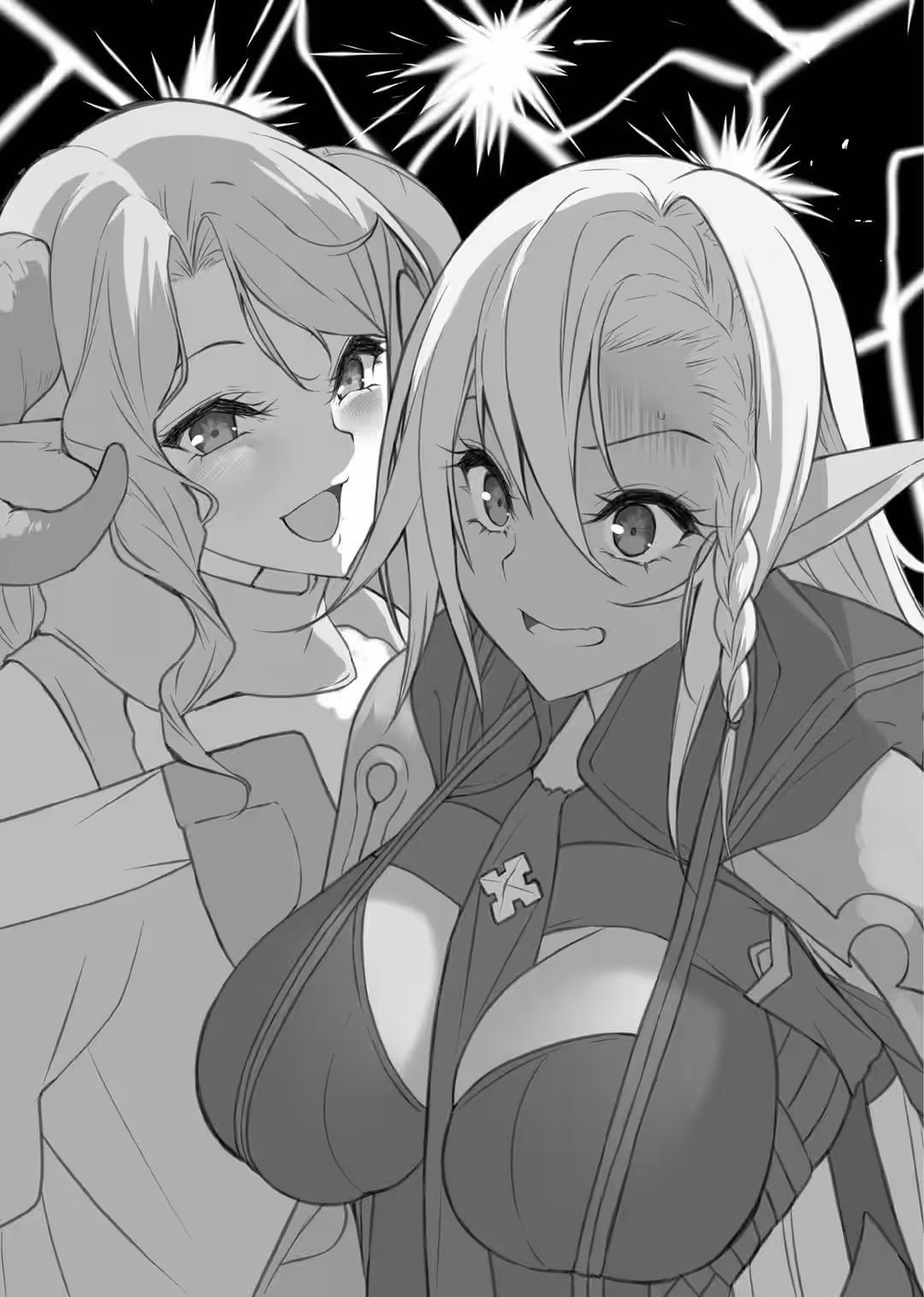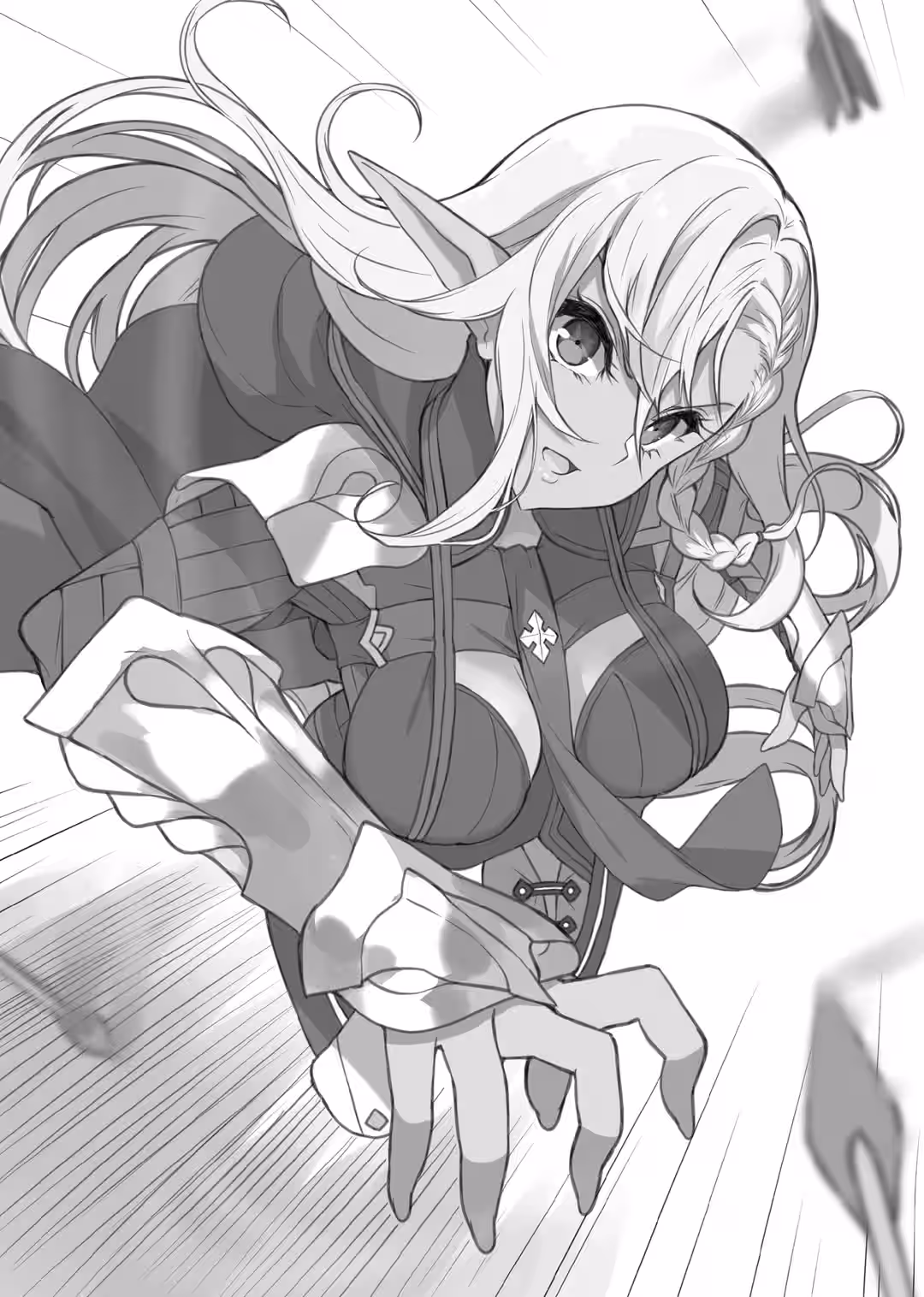Sylphy’s complexion was a dash darker than the average elf’s. When I called her a dark elf when we first met, she just about kicked my teeth in. In spite of that, the two of us had a pretty amenable relationship now. It happened pretty quickly too. We’ll just leave it at that.