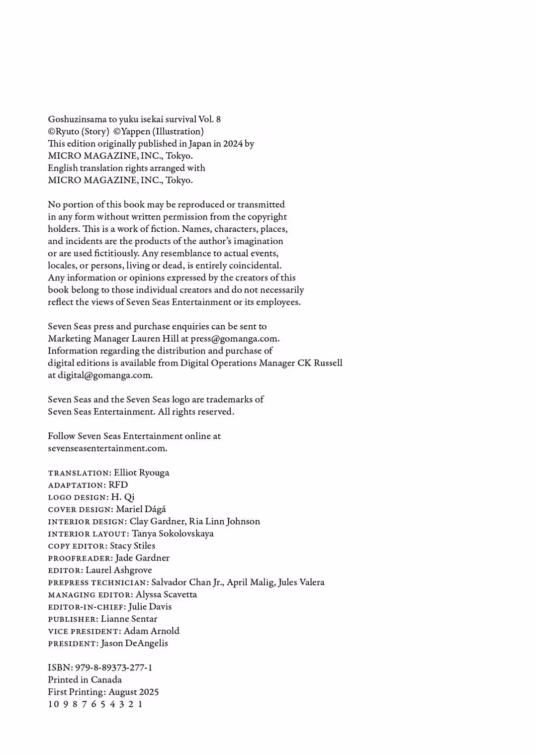 THANK YOU SO MUCH for picking up Volume 8 of Survival in Another World With My Mistress!